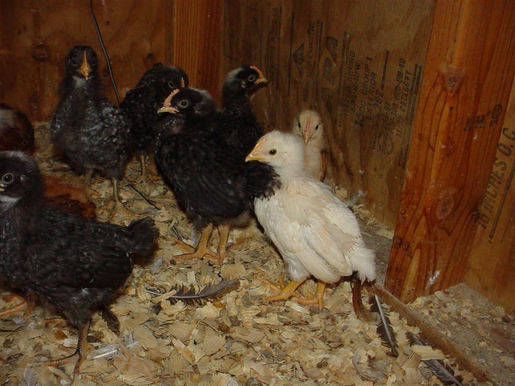 I ordered a mixed bag of mostly roosters from Cackle. They're almost 3 weeks old. We think we have mostly barred rock, buff orp. and production red, but we cannot identify 3 of the chicks. We originally thought they were BO, but their feathers are coming in almost, but not quite white. They're just barely off-white. Their chick 'fuzz' is definitely yellow, and not buff like the BO's. Does anybody have any idea what they might be? Also if you see any of the surrounding chicks that don't look like BR, BO or production red, that would be nice to know. The one in the center of each pic is the white-ish one that I'm asking about. Thanks.