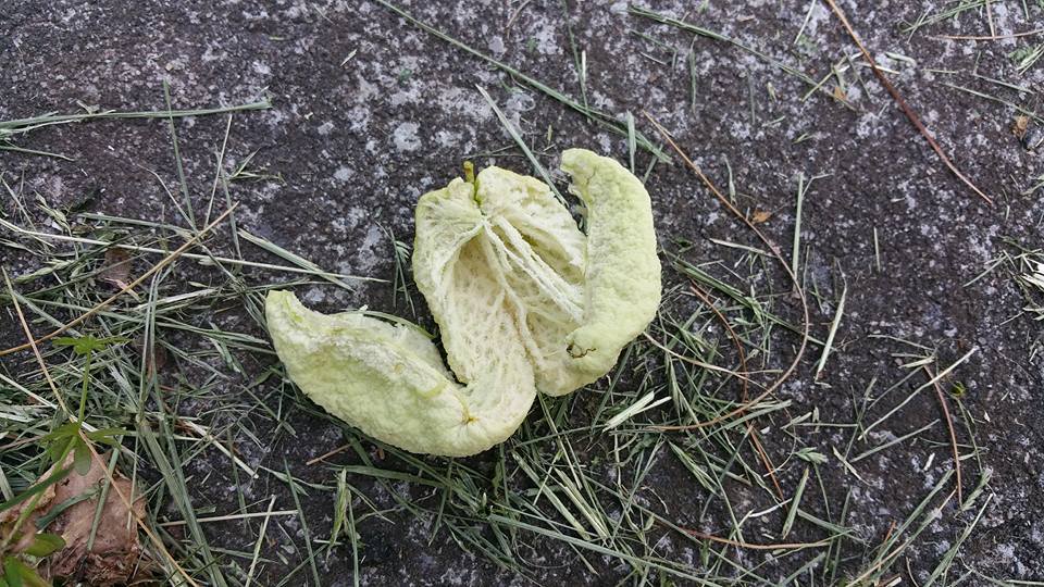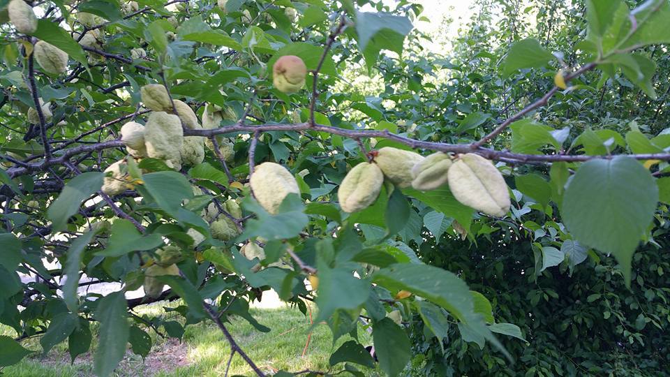 We haven't finished a full year at this house yet and are coming up with all sorts of surprises. I've never seen anything like this. They had white flowers a couple of weeks ago and now these appear. They're hollow fruits, no smell, and no visible seeds (see pic). I've asked around and no one has any ideas.