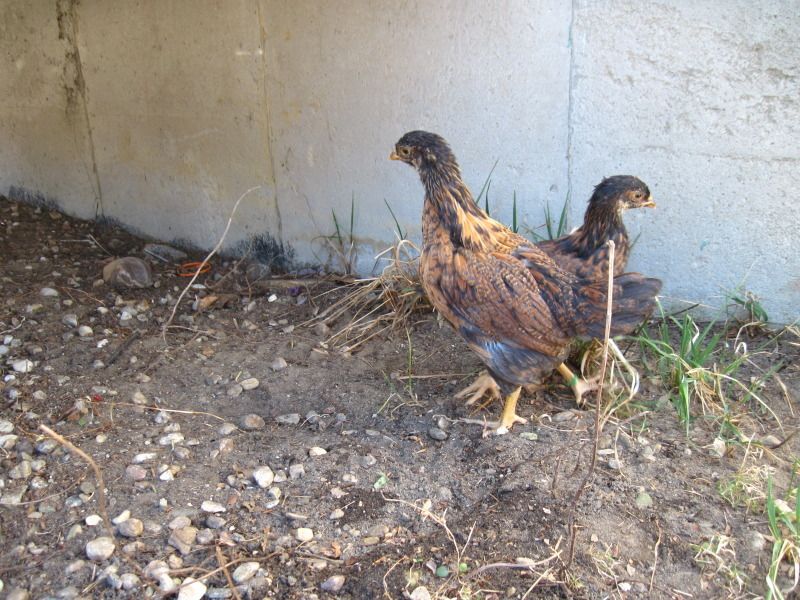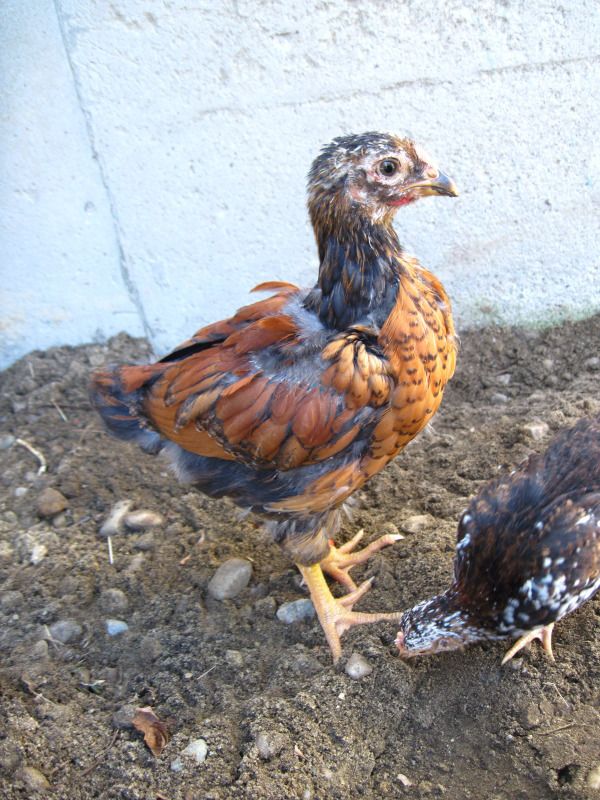As far as your little OEGs, I'm not sure I'm sold on the spangled idea, mainly because of the Ameraucanas. If the breeder likes the gold duckwing coloration, it's likely he breeds gold duckwing oegs too. Time will tell though, you've got some cute chicks!