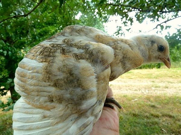 So, I got these two chicks at the feed store in the "Ameraucana" bin. They were mixed in with chicks of a million colors. I thought they would be solid blue when they were grown b/c they were both solid when I got them, but obviously not anymore. Does anyone have any clue what color they are, and possibly what they will look like fully grown?
