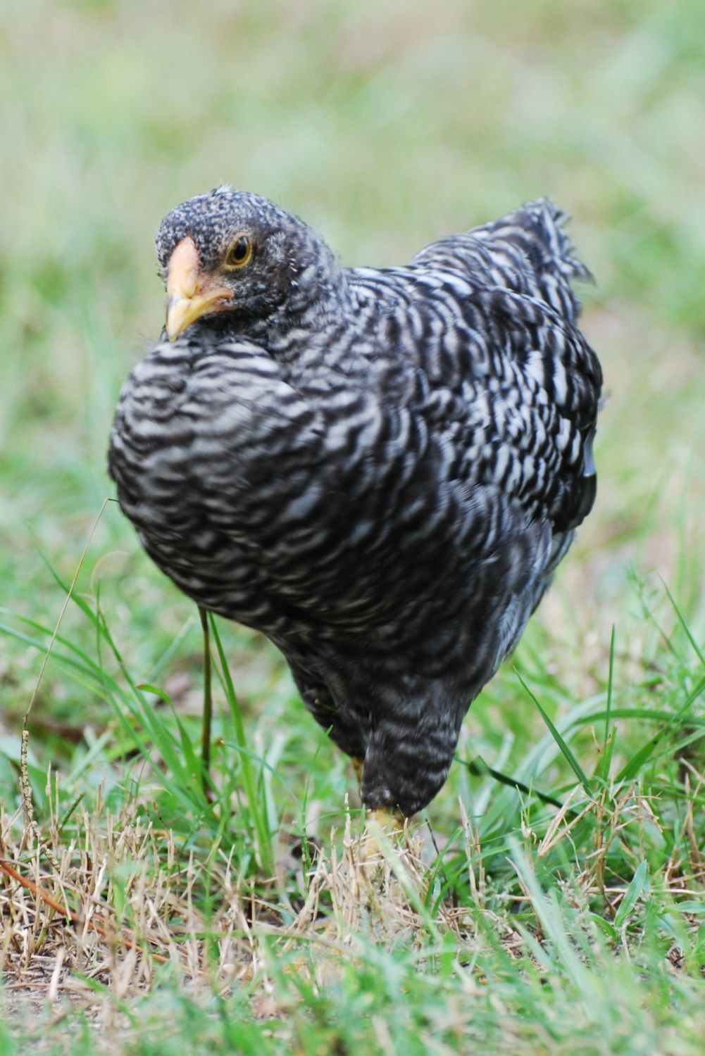 This little one is Rio, who is 5 weeks old. S/he was sold as a barred rock. Obviously S/he is not a pure BR as there is a rose comb. I thought possible Dominique mix instead? What do you all think?