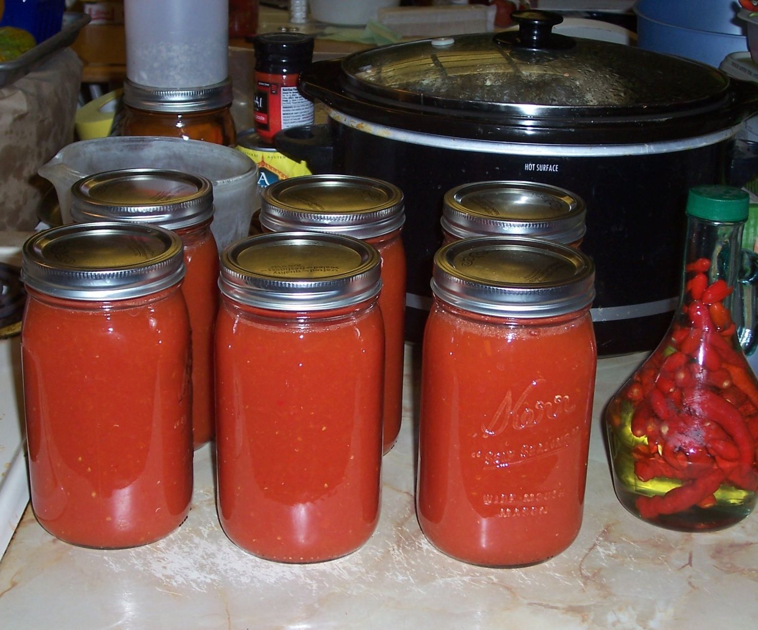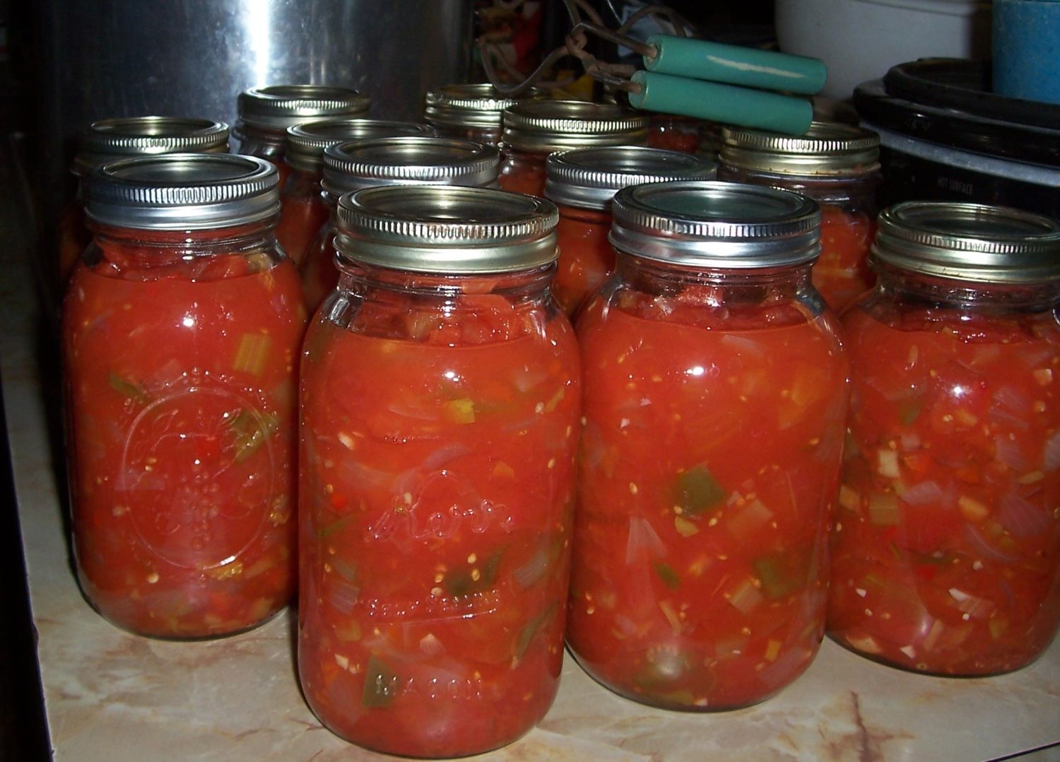 Past three days have finished 29 quarts of soup starter, 6 quarts of spicy tomato juice and 20 quarts of pickled okra.