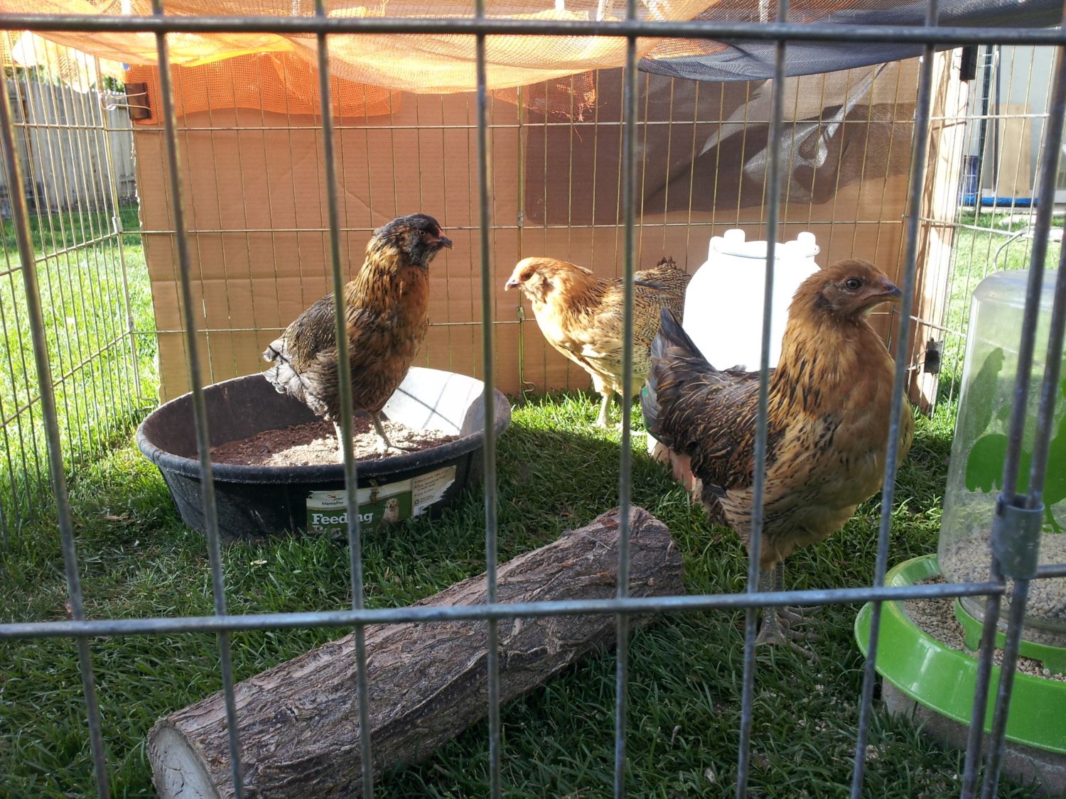 My 1 year old hens are: Mrs. Howell (white Leghorn), Ginger (Golden Comet), and we had MaryAnn (SL Wyandotte) but she died last Sunday.