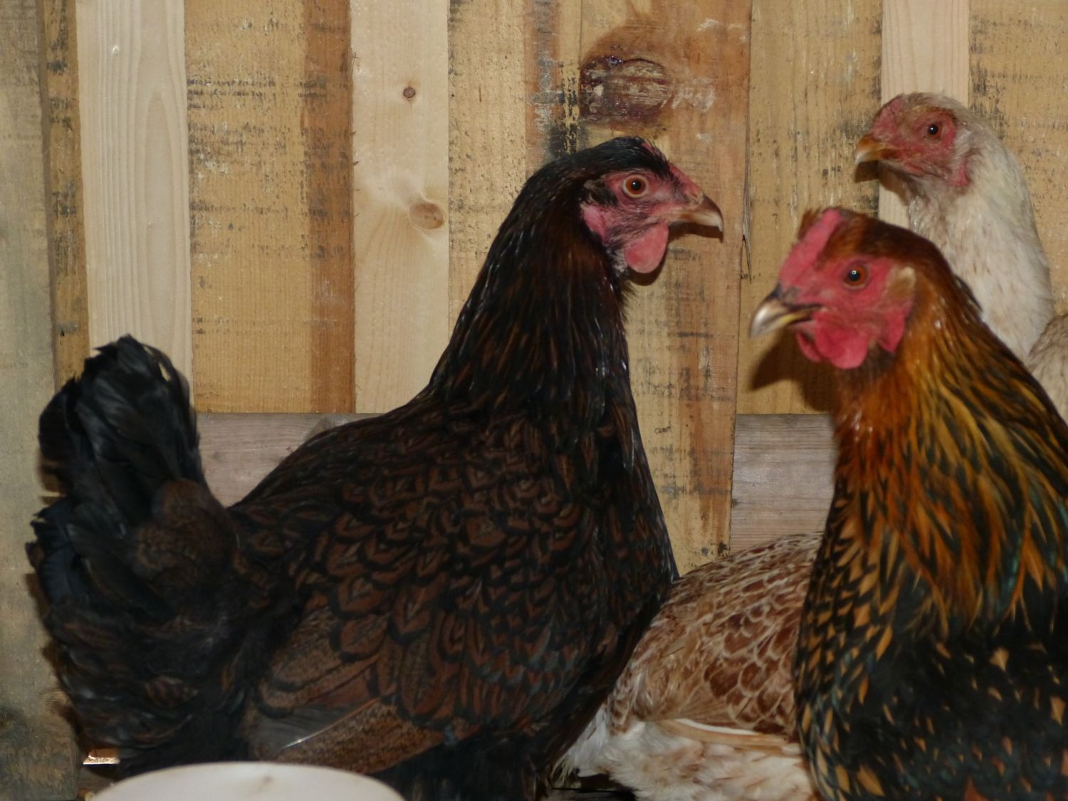 I got these two hens a month ago and was told they were blue laced wyandottes. They do not look at all like blue laced to me! They came with a gold laced wyandotte and two red cornish hens who all look like what they are supposed to be. These two have dark reddish brown feathers with what I believe is called pencilled markings? The only breed I can find that even looks close is a Barnvelder - colour and markingwise they look very much like barnvelders BUT they definitely have rose combs not single combs. So . . . any ideas? maybe a cross? They are very sweet and I really don't care what they are, I'm just