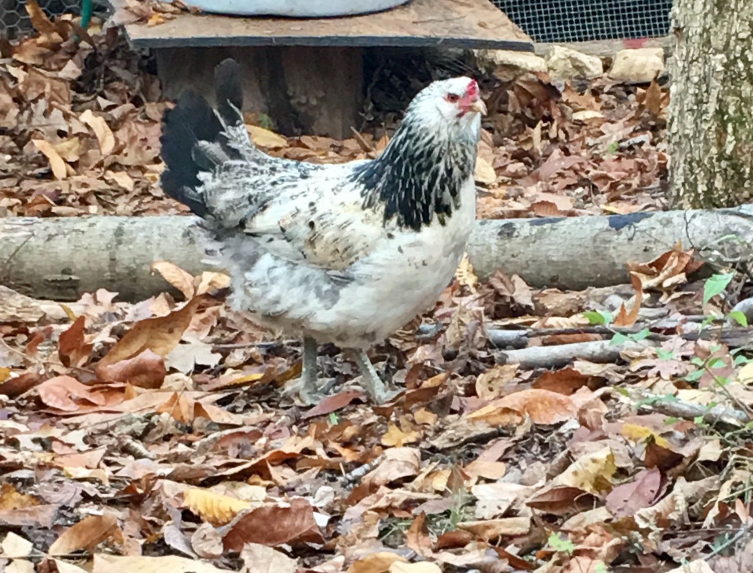 Anyone like to take a guess at my chicken combo? She just showed up outside the chicken run one morning & I've adopted her. She doesn't have wattles but she seems like a mature hen. I've had her about a week but no eggs yet(just assimilating her now). Coumbian/Araucana/EE mix? I think she is beautiful no matter what. Maybe once I get an egg, the color of it will give me a clue. My other hens haven't begun to lay yet (one has twice now) so my adopted hens egg should be fairly obvious it's hers. Just thought it would be fun to play a guessing game. You won't win anything, but my respect & admiration![]()