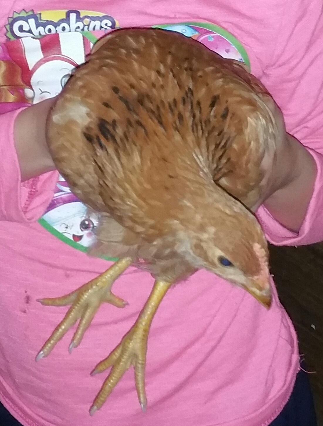 Anyone wanna take a stab at gender or age of this? It's at least part buff orpington?, and I think maybe crossed with columbian. THANKS!