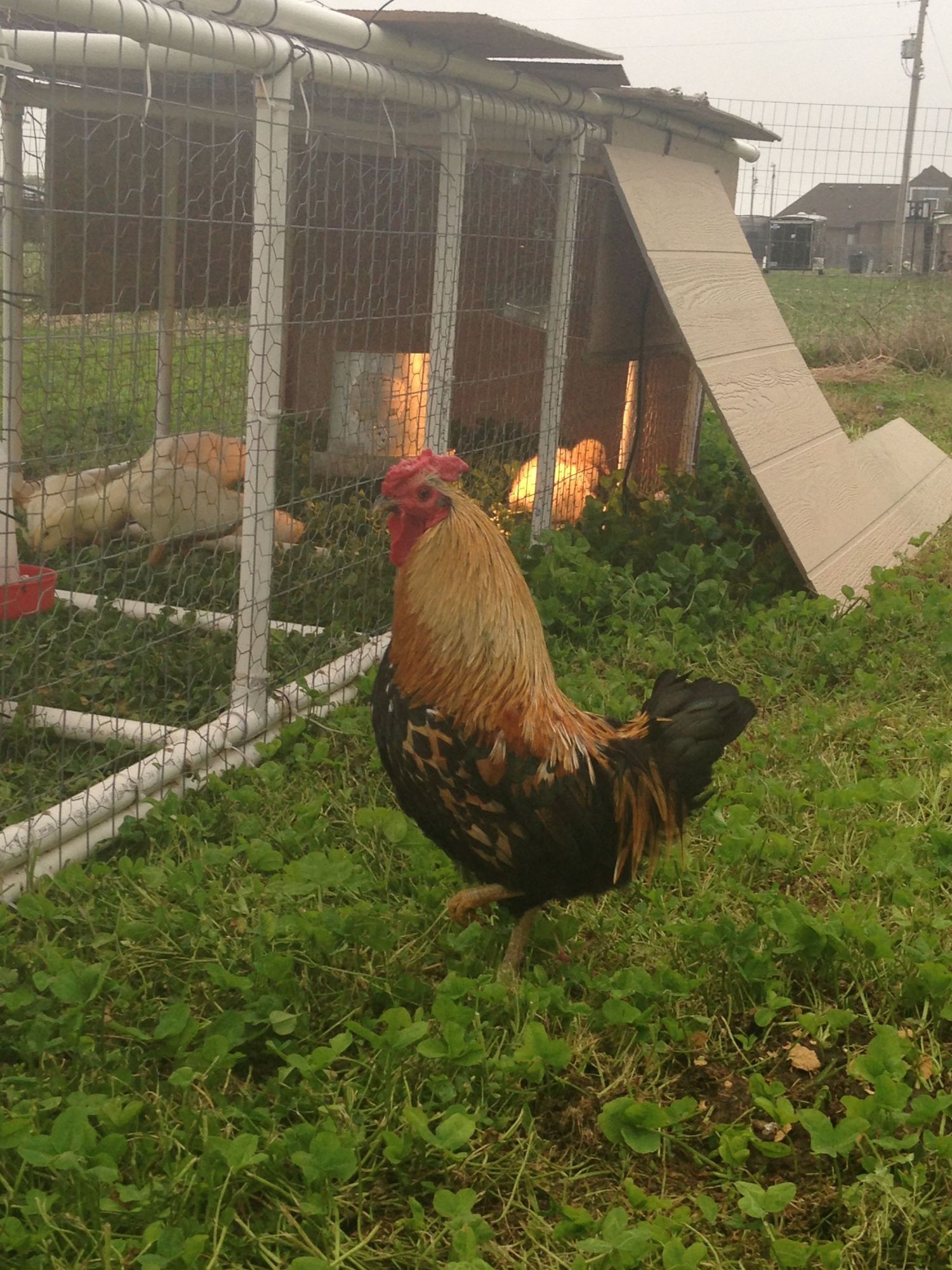 This is Steve. Mystery Bantam roo that appeared out of nowhere and was missing a lot of tail feathers. Rescued him from the neighbor dog's mouth, but he flew off several more times before we reeled him in after dark with a light. He was so weary and scared for the 1st 2 weeks or so, but is loving his shelter and roost in our garden. He started crowing only a month ago. I'd love ideas on what he may be. Rose comb, willow legs, yellow feet, black spurs and toenails. Very colorful with lacing or penciling on some of his front feathers.