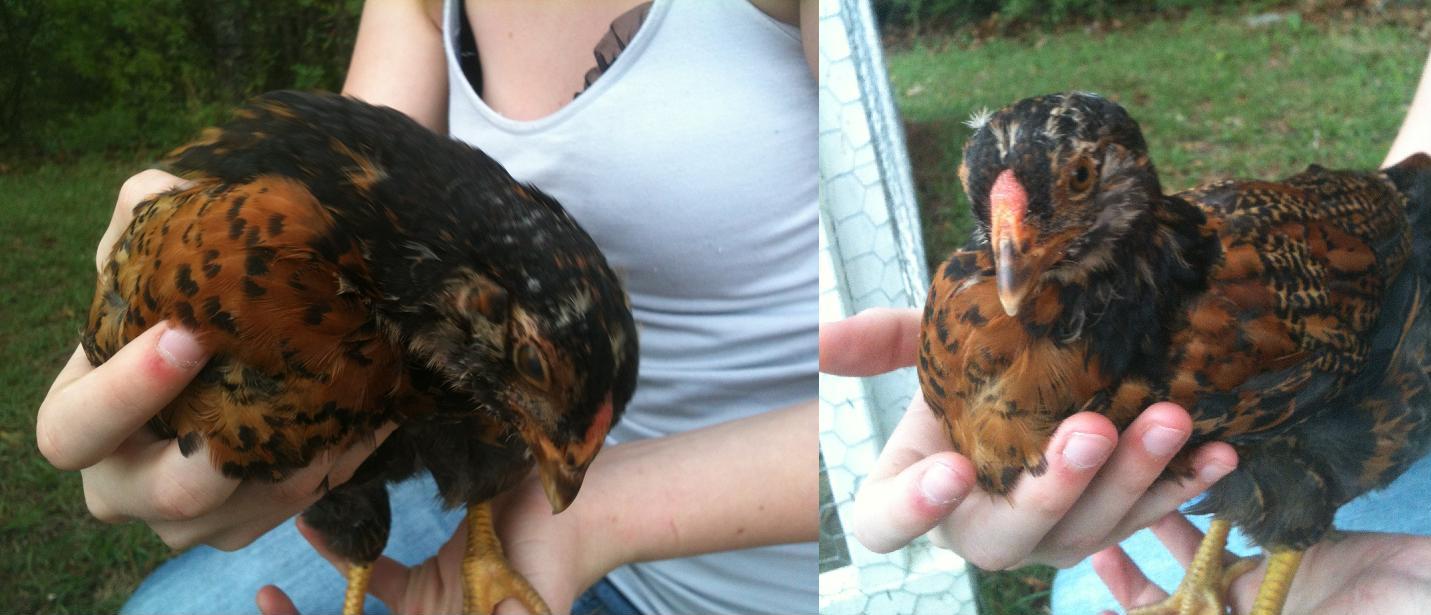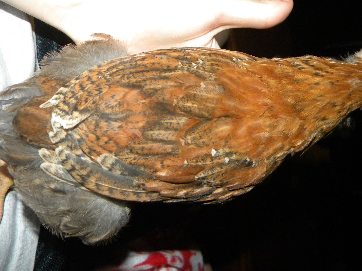 Mar 31, 2012 #1 MistyF In the Brooder 7 Years Joined Mar 27, 2012 Messages 12 Reaction score 0 Points 24 Very pretty!! This is one outa 12 chicks I bought locally.What breed and gender is it please? I'm hoping its a girl!