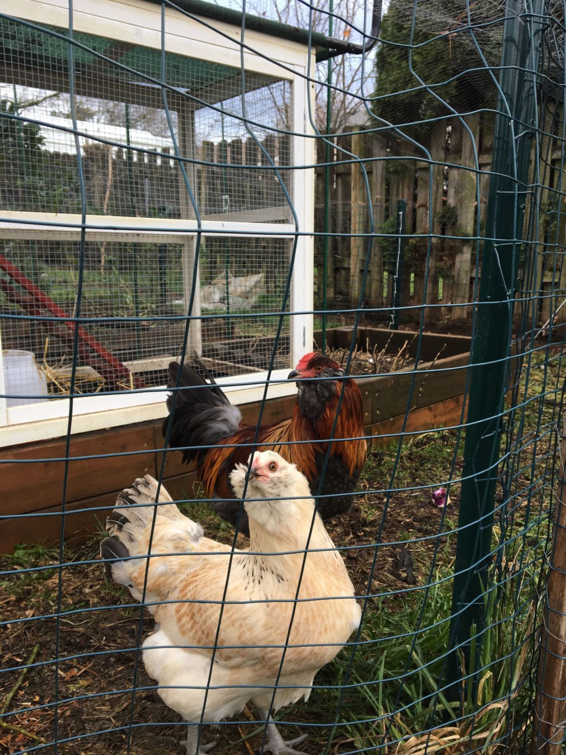 My friend's hen got broody so she ordered some fertilized eggs, let them hatch, and raised them. I took the "hens" home when they were about 12 weeks old - now they're 5.5 or 6 months old. One turned into a roo, the Black Australorp got eaten by a hawk (since then I've covered the run in avian netting) - but I'm curious as to what you all think these two are?
