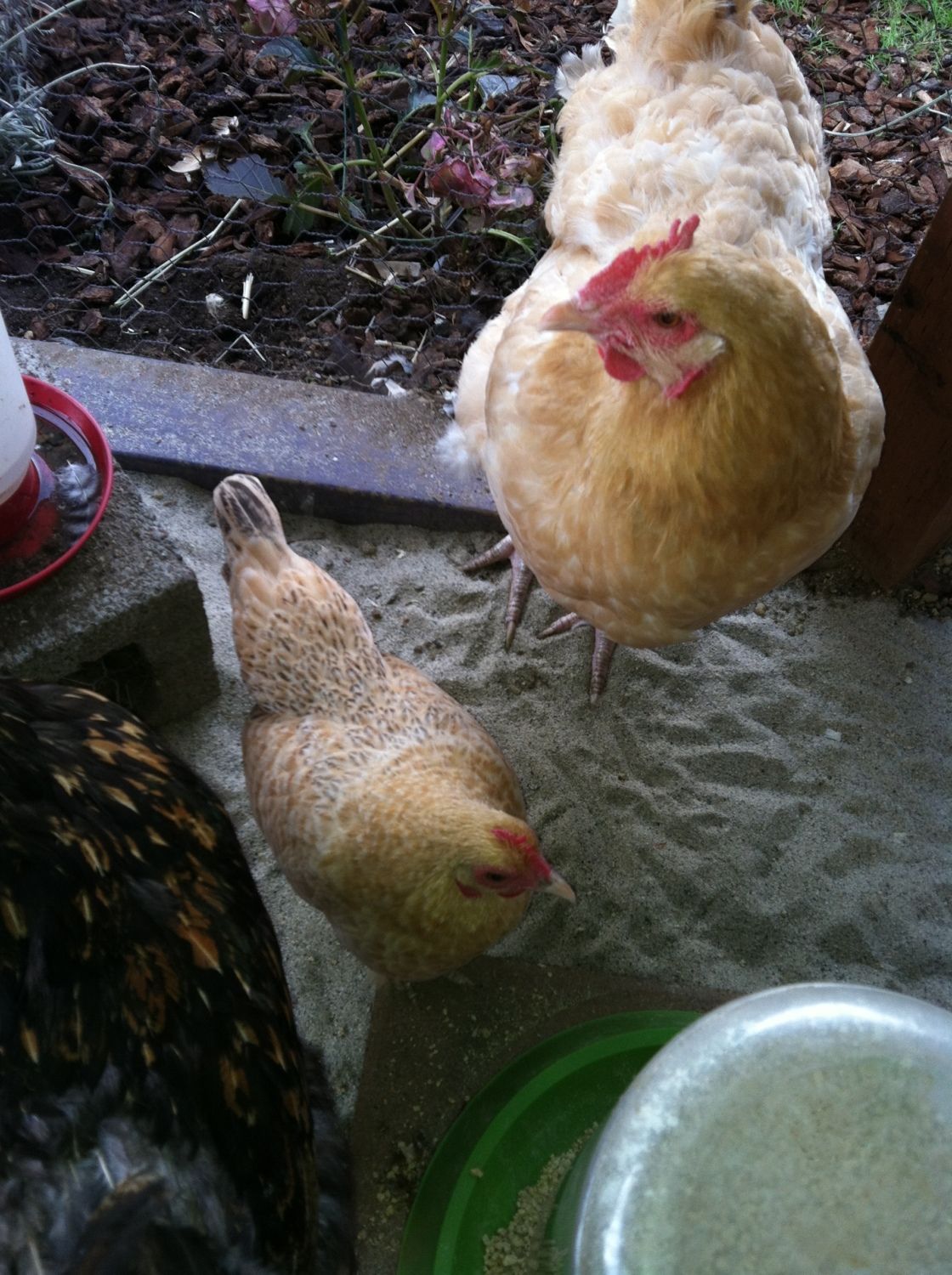My DD and I went and picked up a BO and a GLW yesterday, and DD fell in love with this cute little bantam hen and I don't know what she is. She is very sweet and cuddly once you pick her up and she settles down a bit. She is pretty flighty at first and LOUD when freaked out. She hopped up on the coop ramp last night when we brought them home and DD was petting her and she just layed there while all the other girls tried to get around her to get in to the coop for the night. She also lays a small cream colored egg. Any help would be great!