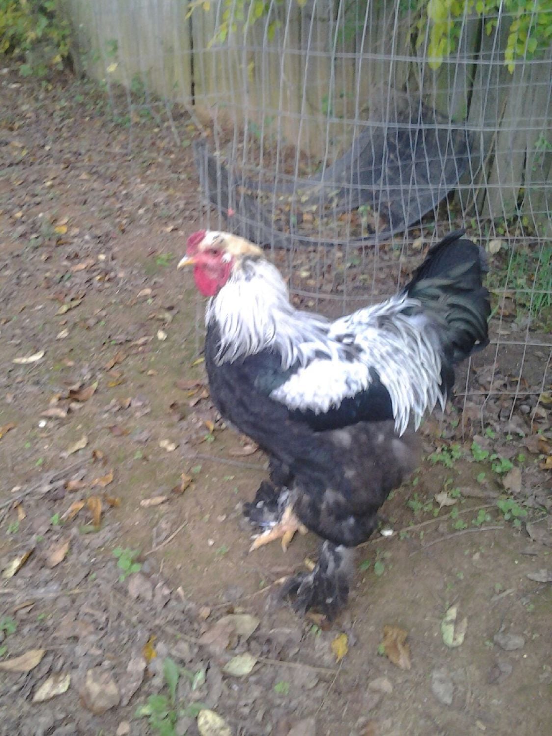 I was given this rooster a year ago along with 5 RIR hens and 1 hen that looks like a RIR but she is beige colored. My granddaughter named the rooster Mr Sexy. I would like to know what kind he is. Maybe a Brahma? My RIR hen sat on 8 eggs of her own and hatched one. The chick has the roosters color along with his fuzzy feet. It is about 12 weeks old now. That is one of the reasons I was wondering what breed Mr Sexy is.I have a pic of the chic when it was one day old, I will take a pick of the chick tomorrow and post a resent pic. Any help would be welcomed and appreciated.