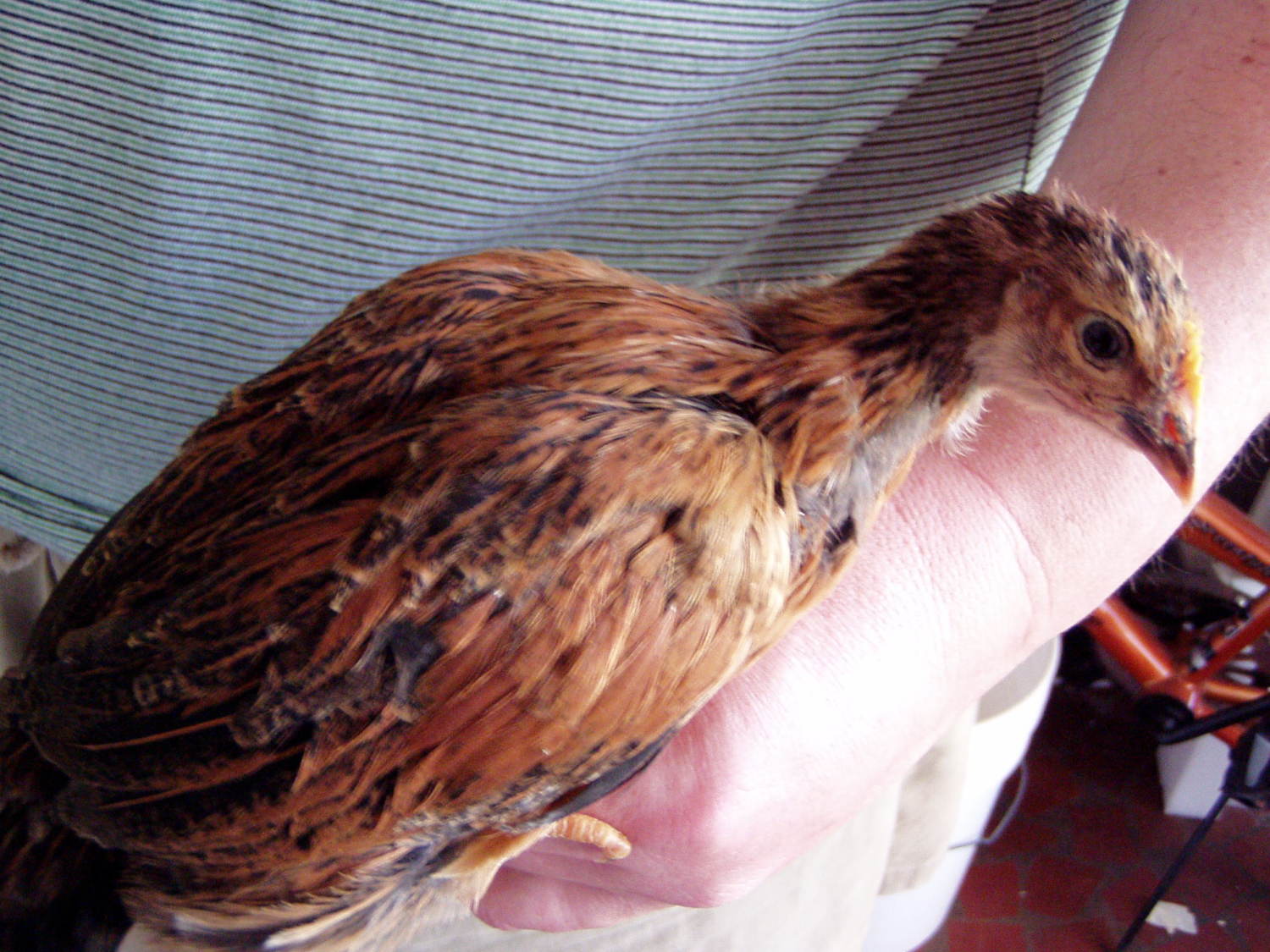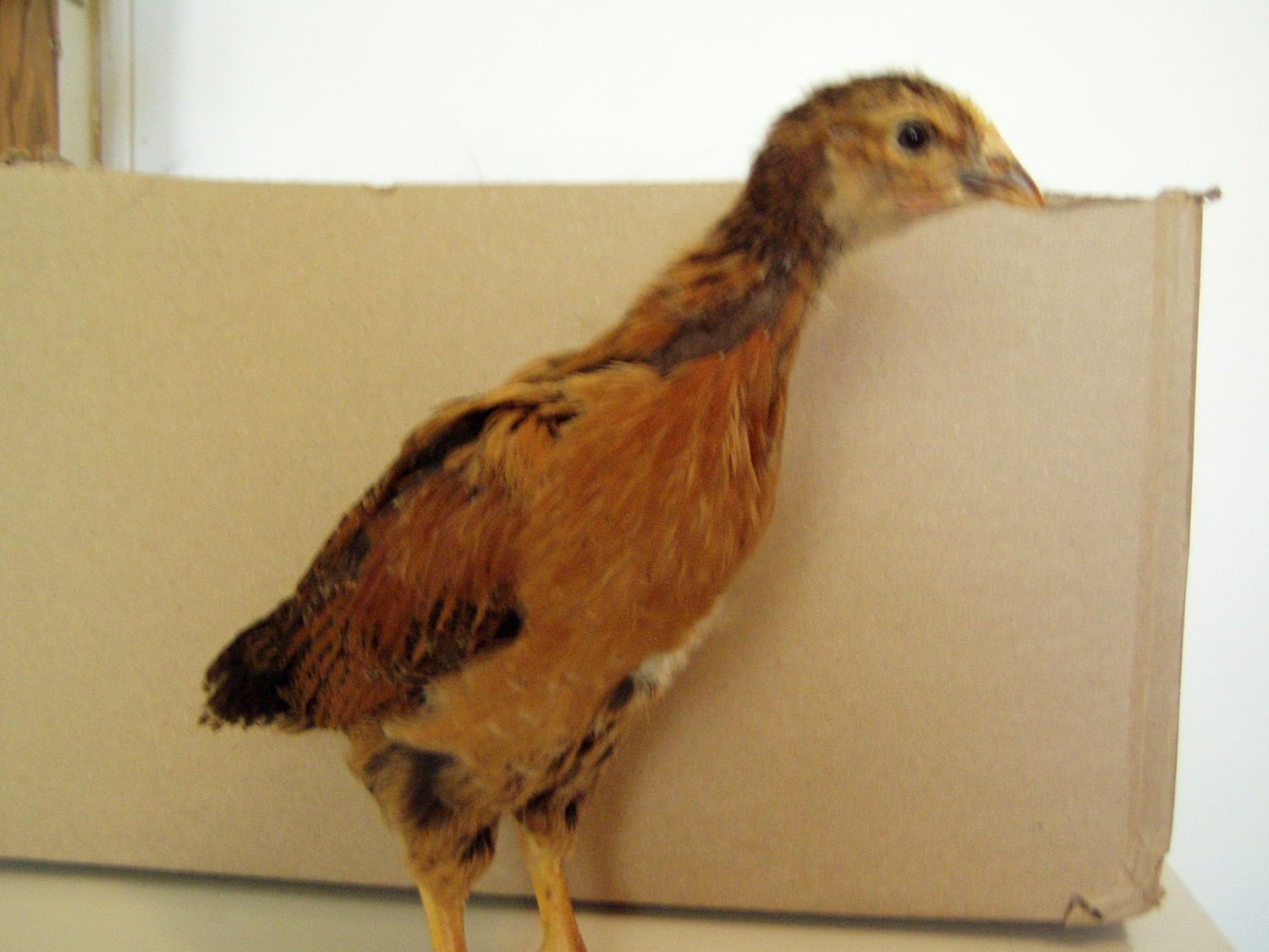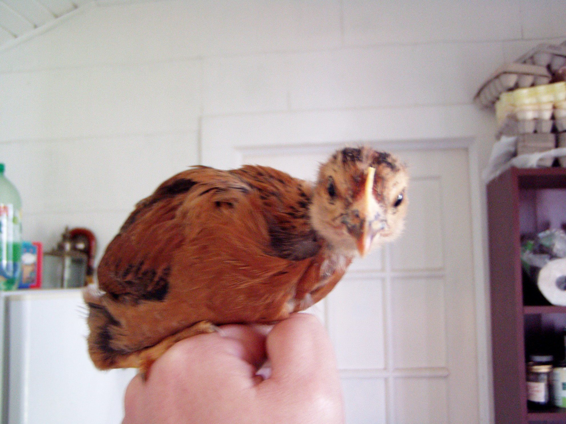 Actually, that's what she looked like at a week old when we bought her. She's just a slight bit more brown than the one you pictured and was already getting her wing feathers. Of course, with her feathering out, she's getting a real red color to her wing feathers now.