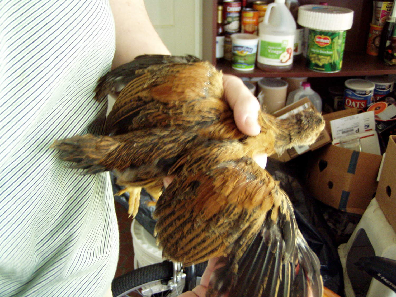I put up the wing shot just for the heck of it. I wanted you to see the feather pattern. Red on the leading edge and black on the outer edge (I know there are technical terms for them, but I don't know them yet). Thankfully, her comb is still safely yellow, so for now, she's still Suzie.