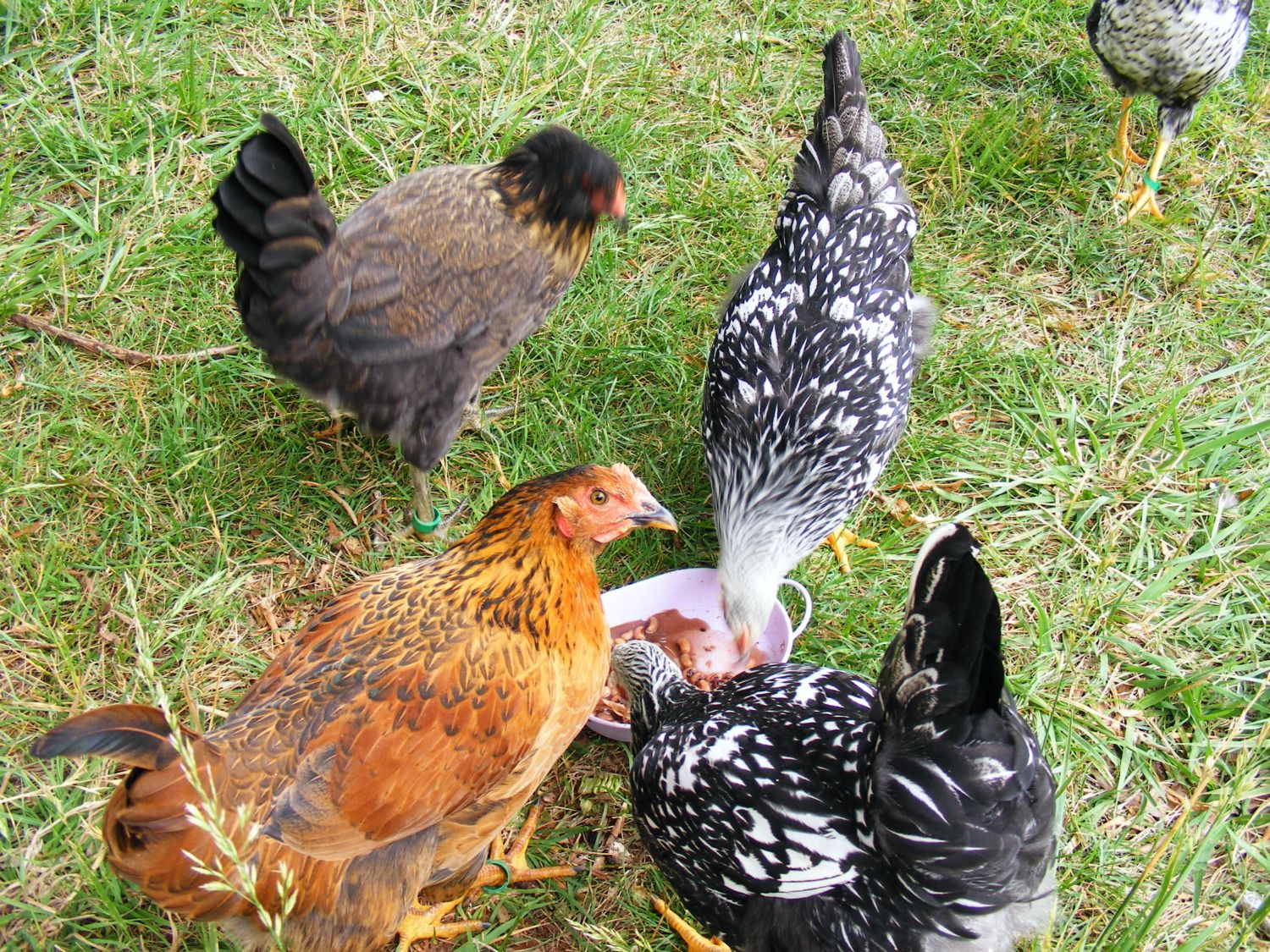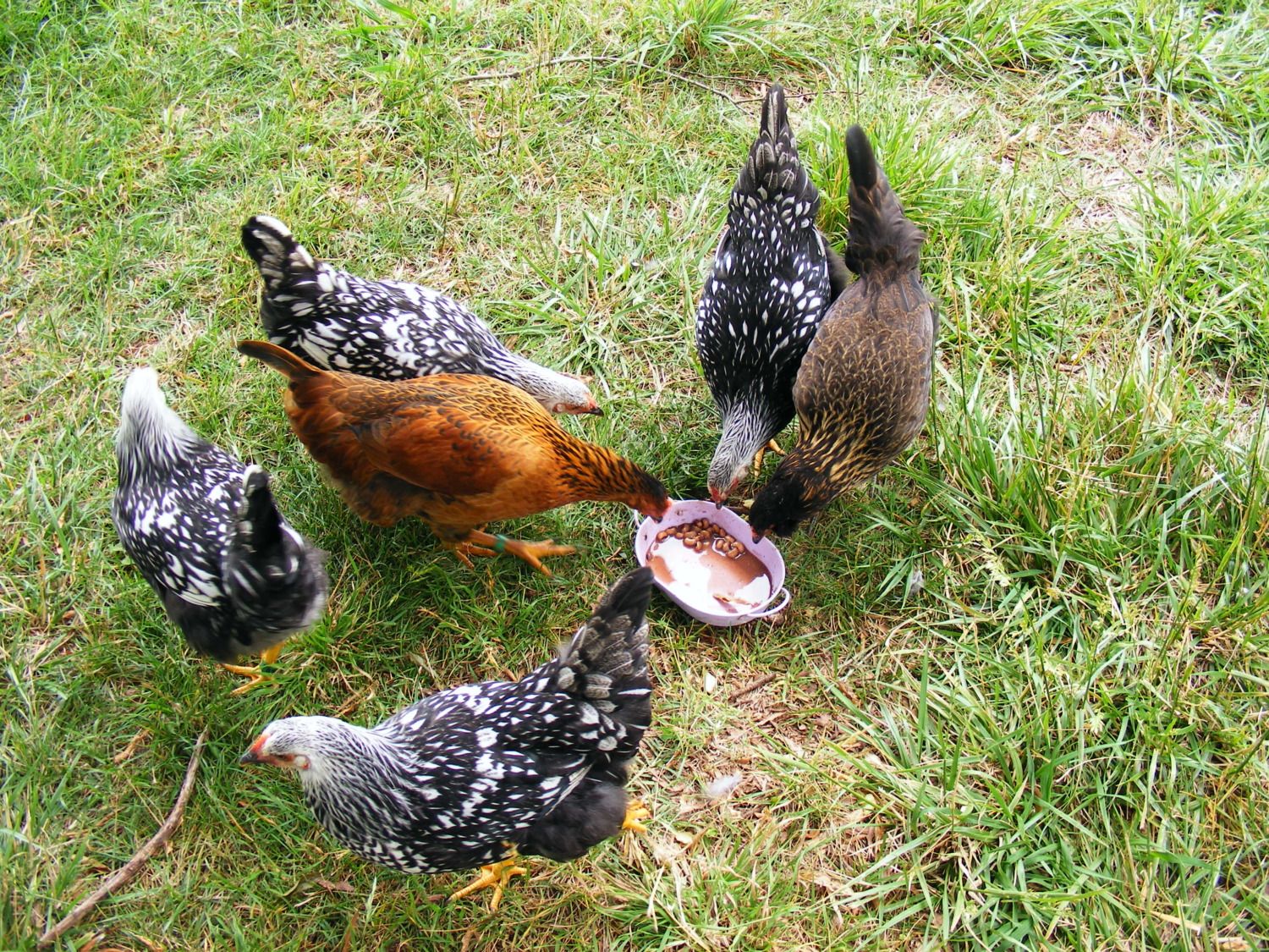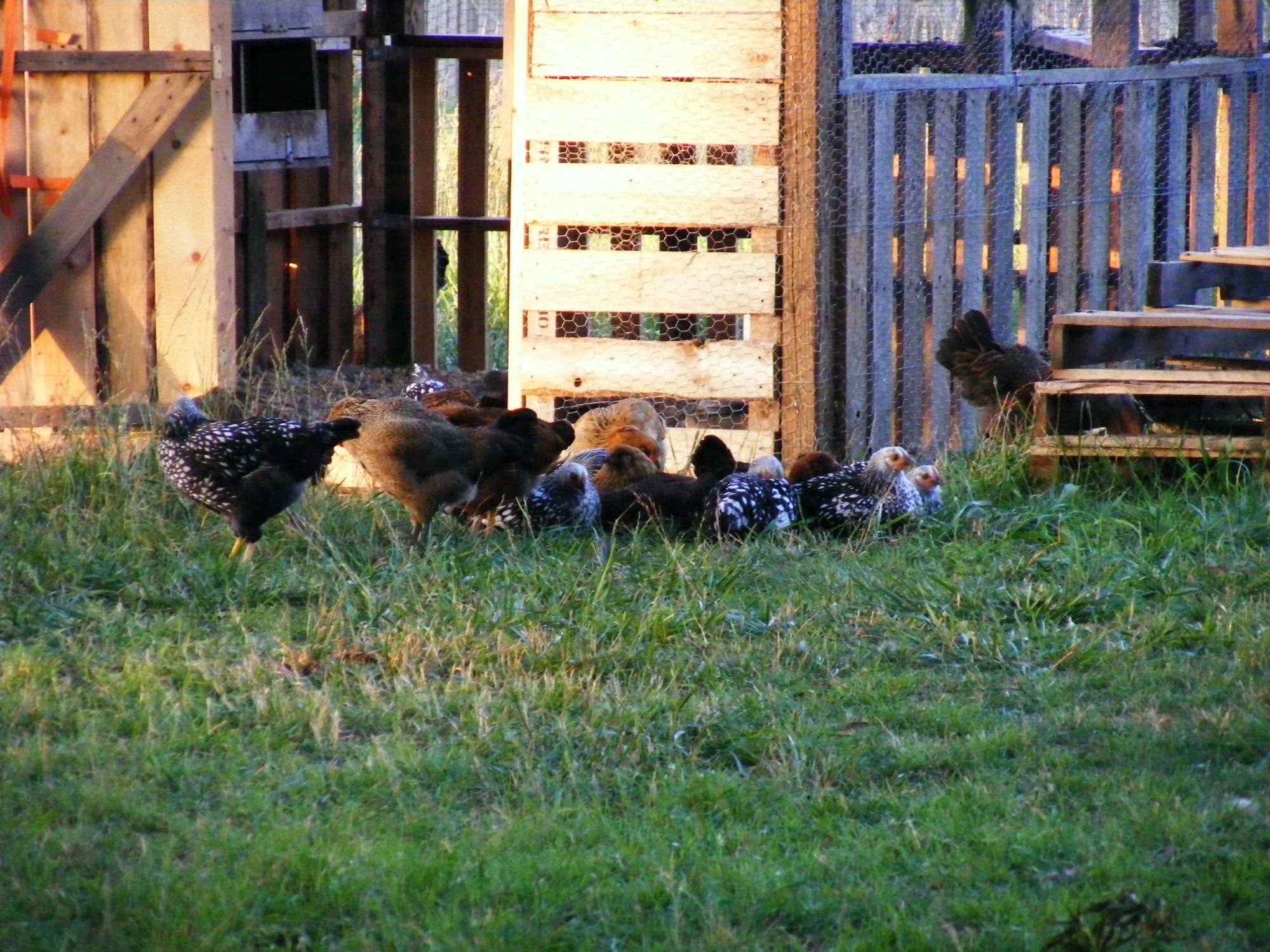 And just for good measure, here's a picture of the whole flock at sunset waiting to go in the coop.