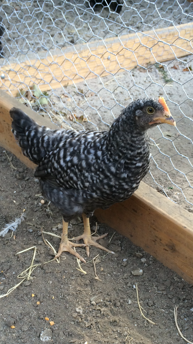 Jul 15, 2016 #2 drumstick diva Still crazy after all these years. Premium Feather Member 12 Years Greeter Friend Spirit Joined Aug 26, 2009 Messages 140,917 Reaction score 294,208 Points 2,097 Location Out to pasture Barred rock and appears to be a pullet