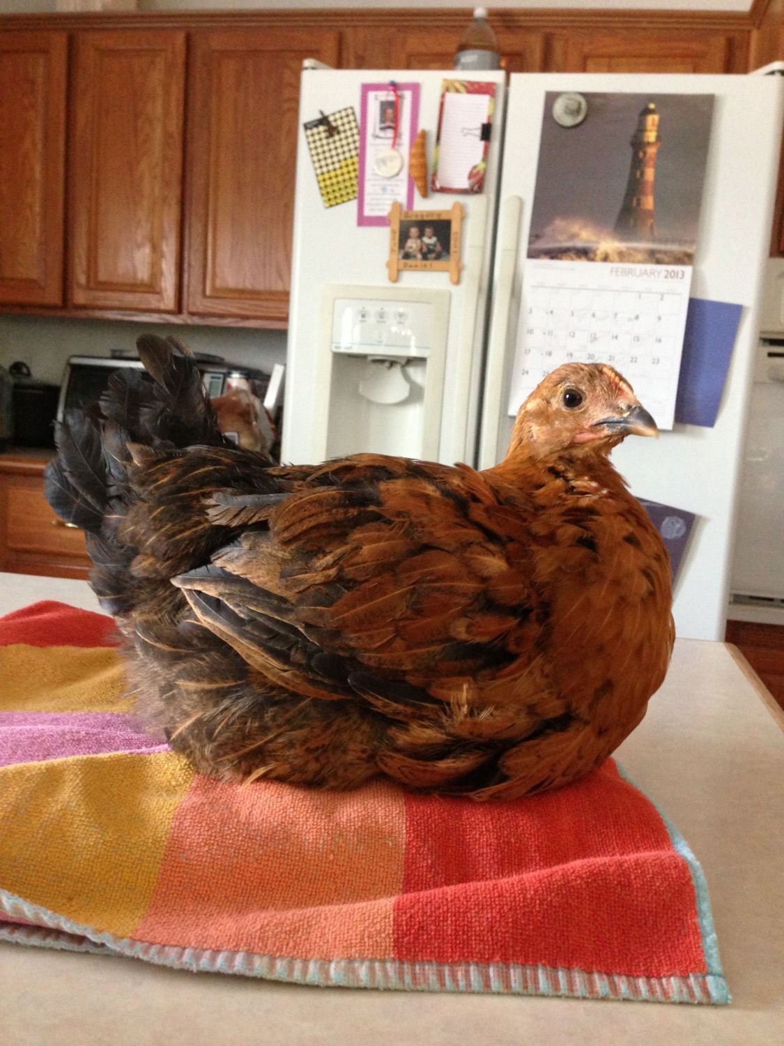 Yeah your right. I responded to it sitting down so I didn't see the legs. It kind of looks like a Chipmunk Easter Egger I used to have.If that's a golden-laced Wyandotte, that's terrible coloring even by hatchery standards. My GLW's have yellow legs, not slate.