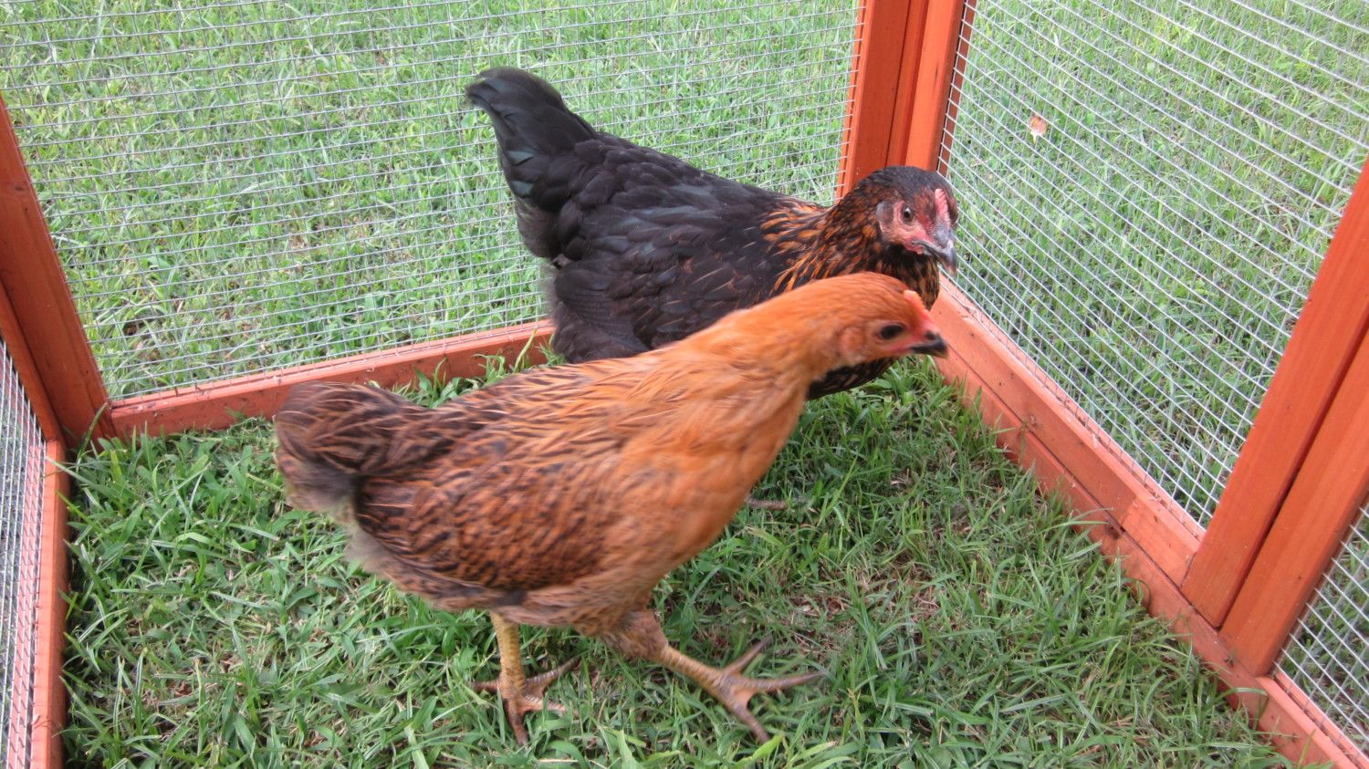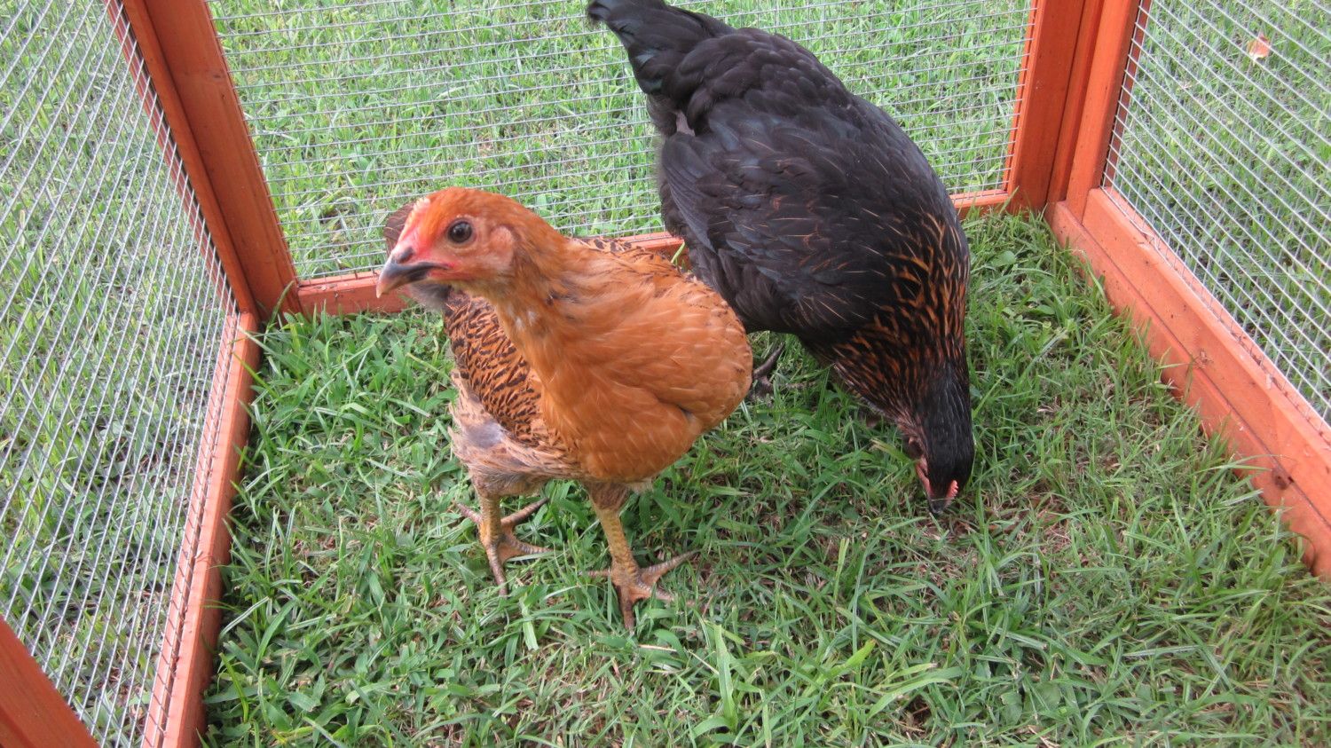 She was in the bin at the feed store along with the BSL also in the picture but no one knew what she was. She was solid brown as a chick with no markings. Although they are around the same age, she is smaller than the two sex links I purchased at the same time.