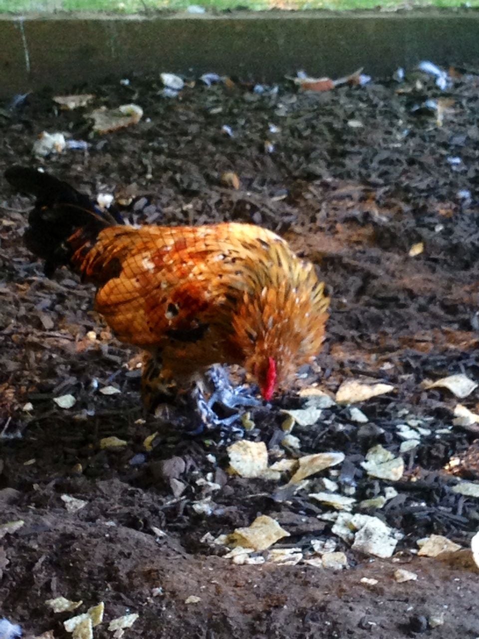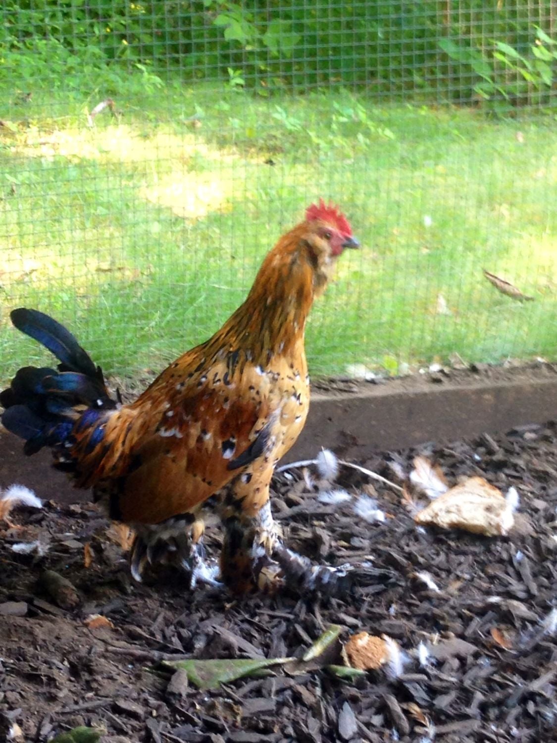 Also, since we started hearing the beginnings of crowing in the am I think she is definately a he. Thank god we named the chicken Duke because it looks like its wearing chaps.