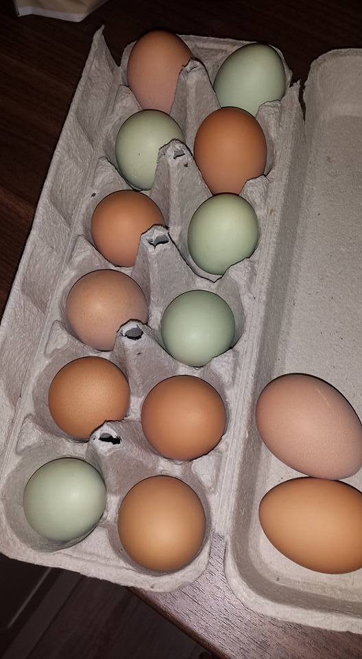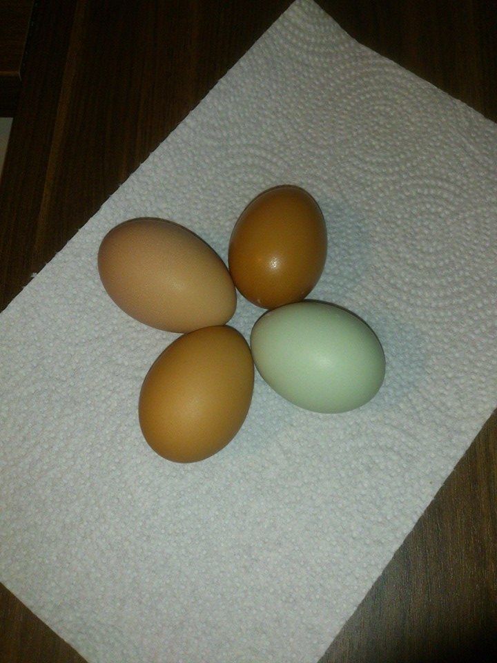 First to lay was silver cuckoo marans at 18weeks 4 days - she stopped after 2 weeks and I thought she was sick, just started to lay again after 2.5 months and I think she was going through a molt. Second was dominique at 20 weeks. Third black jersey giant at 23-4 weeks and last was cream legbar At 26 weeks I think - she is my best layer so far, only skips a day every 12 days or so![]()