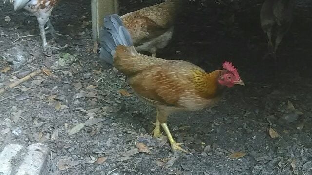 The first bird color is a Blue Red and the second birds color could be a Black Breasted Red but she also carries the Blue Gene. (She has Black in her hackles but Blue in her tail)