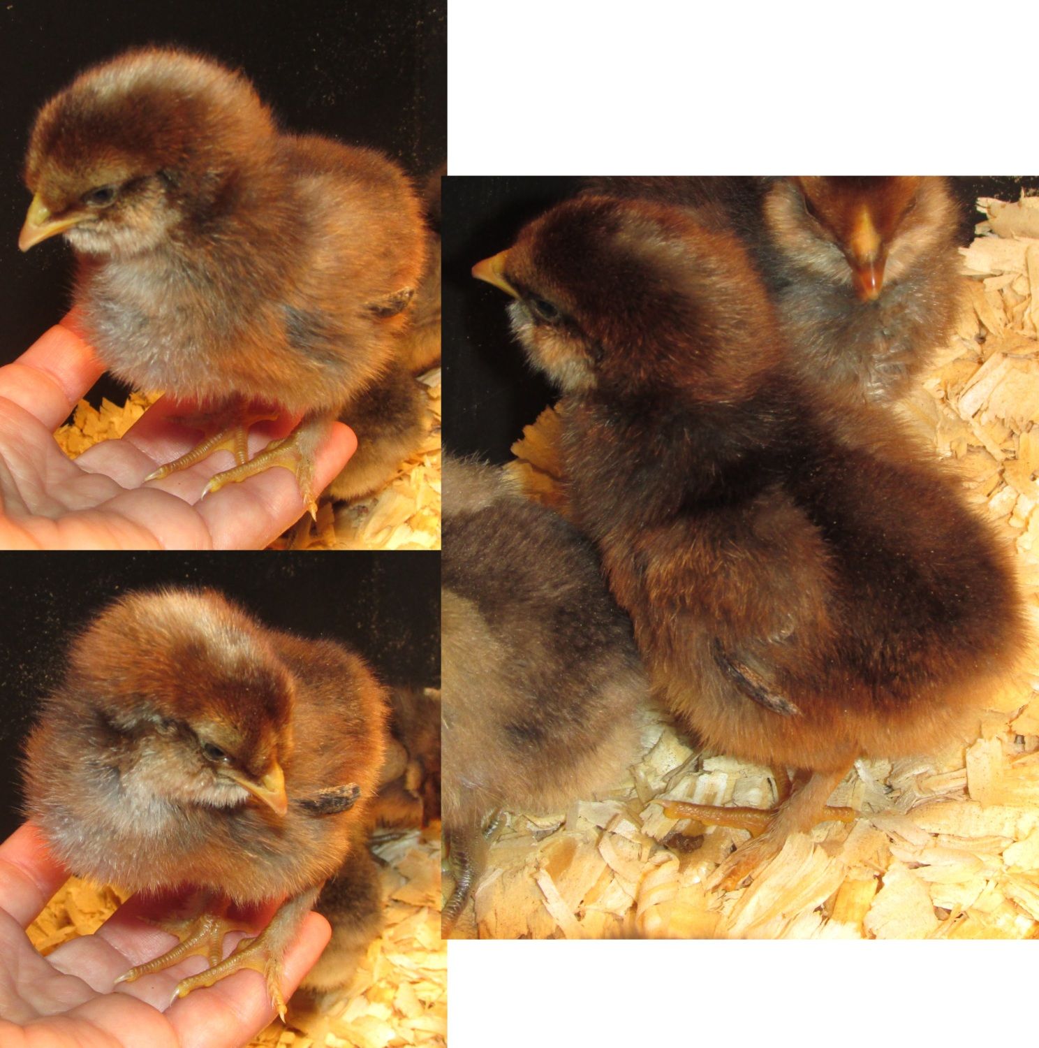 I am suspicious that it *may* have come from my birds but if it did it would have to be the chickens pictured. The hen has given me red chicks before. Both are easter egger X Marans crosses. Both have lightly feathered legs and each carry one copy of straight comb.