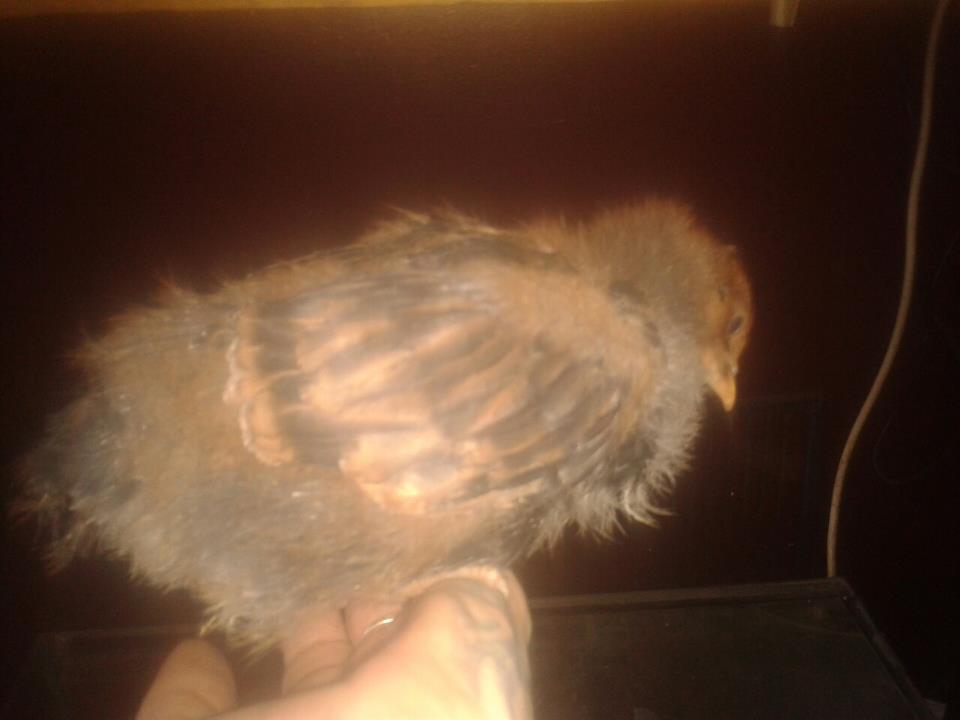 Aug 27, 2012 #2 hdowden Crowing 8 Years Joined Aug 14, 2011 Messages 11,642 Reaction score 348 Points 331 Location louisiana lighting isnt that good and cant see the chicks color that well gold laced looks like this