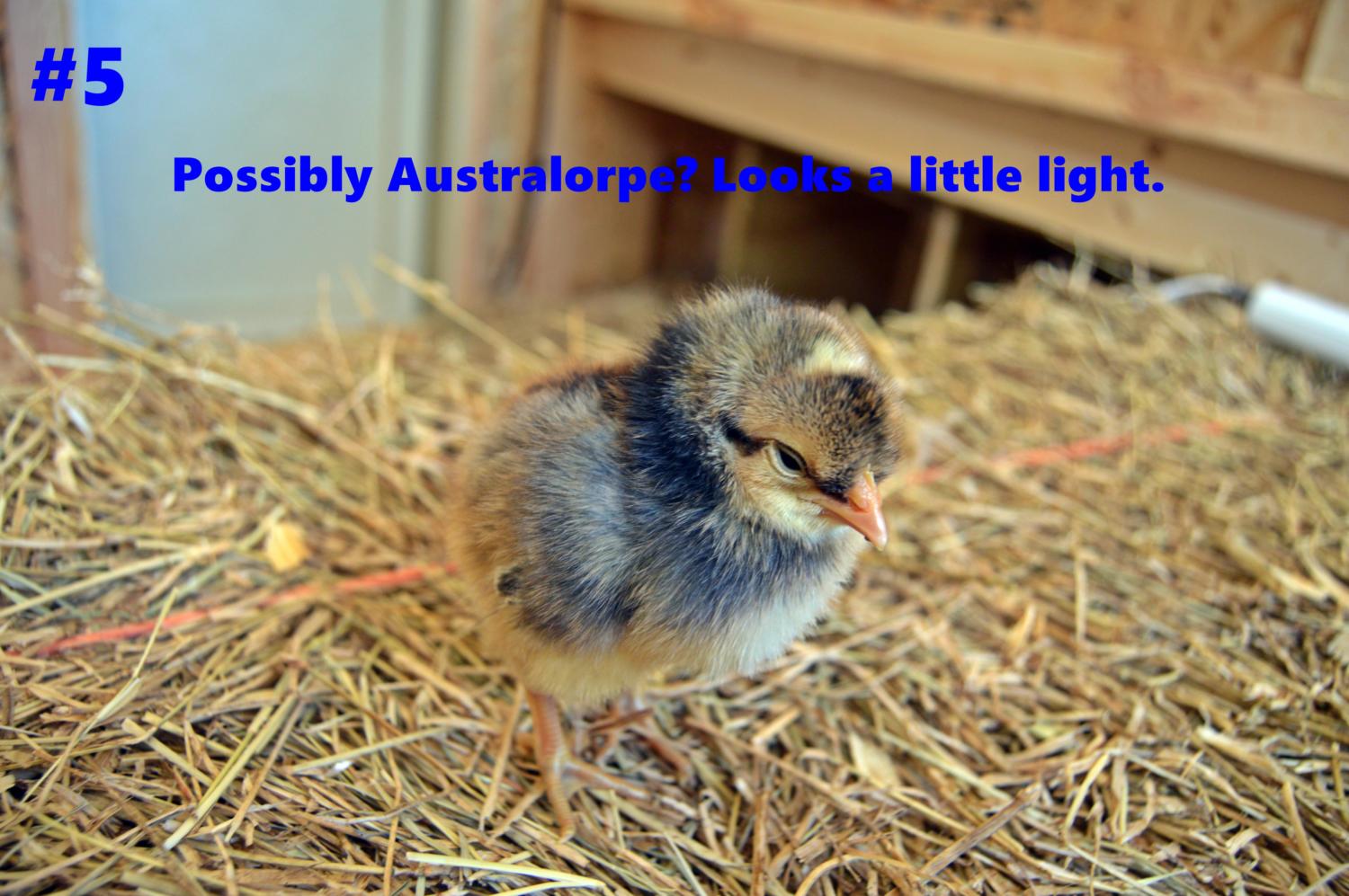 The color or #5 is really on the blue side, not black. I saw a bunch of black Australorpes at Rural King yesterday and they're much, much darker.