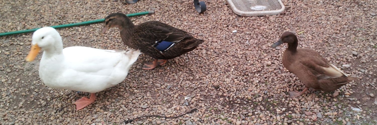 We got 5 ducks from a family who were not allowed to keep them any more. They did not know anything about what breeds they were. We assume the giant white one is a Pekin. We are guessing the middle one with the color on its wing is a Rouen? And are unsure about the all brown one. Could it be a Campbell?