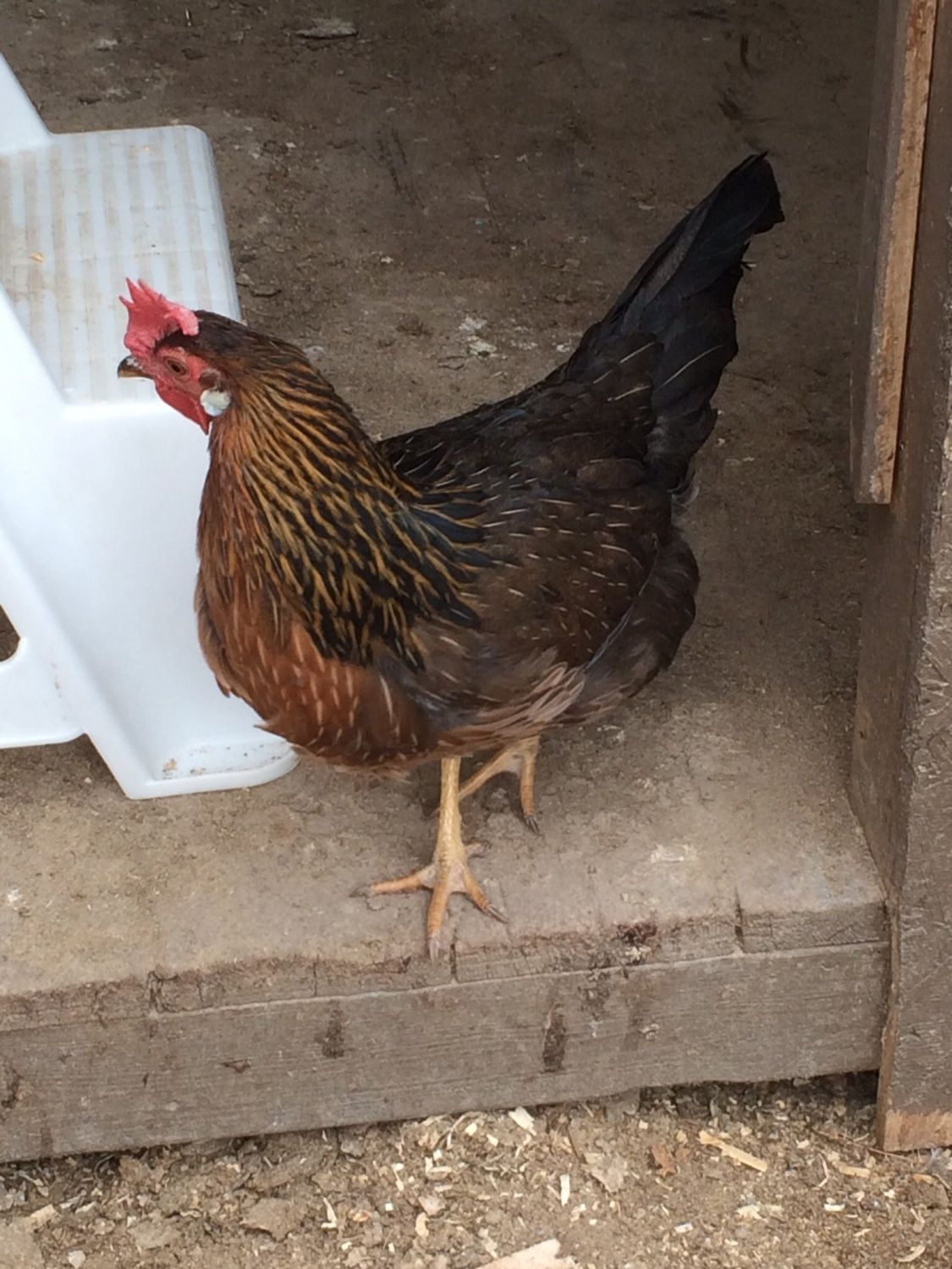 The above bird is a Single-combed Light Brown Leghorn. The red birds in the other photos are Production Reds, which are sold by many hatcheries as Rhode Island Reds or New Hampshires.