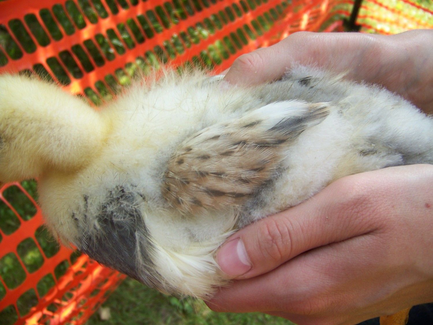 what did your fawn/white ancona look like as a baby? That makes me really curious! I have on little boy ancona that is known as "pumpkin" cause he's extra fluffy, and more orange than yellow. he doesn't have any spots at all, he just has that orangey fawn color with some lighter yellow.Ah! So pretty! We've had some crazy colors this year too. LOOK!