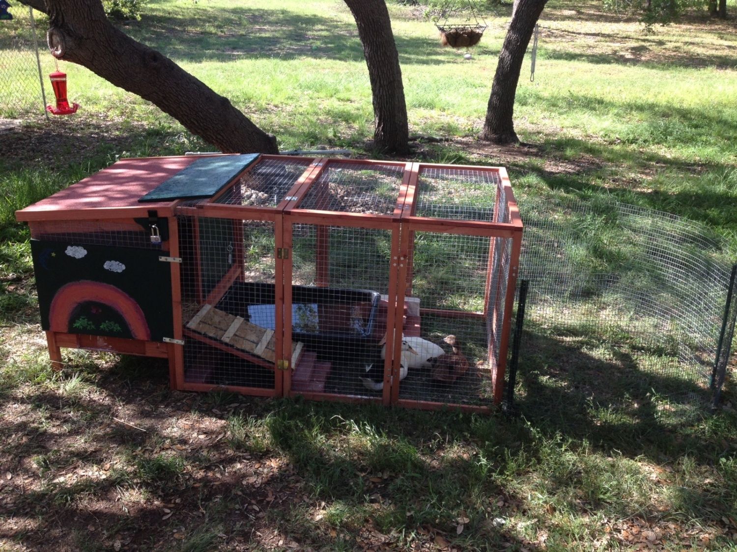 ) the jingling bell will hopefully detour them. I removed the nesting boxes bc they are only 7 wks old & still love to huddle together. What a great set up ! I am picking up crate #2 today.. its brown so I am going to be painting it to match the first oneThere is an extension to the right, but they are only allowed out in that section if we are out there with them. My 13 yo daughter is painting this side, but she isn't done yet.