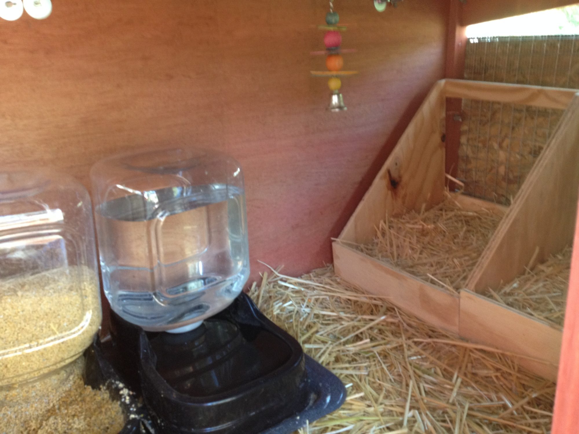 ) the jingling bell will hopefully detour them. I removed the nesting boxes bc they are only 7 wks old & still love to huddle together.![]()