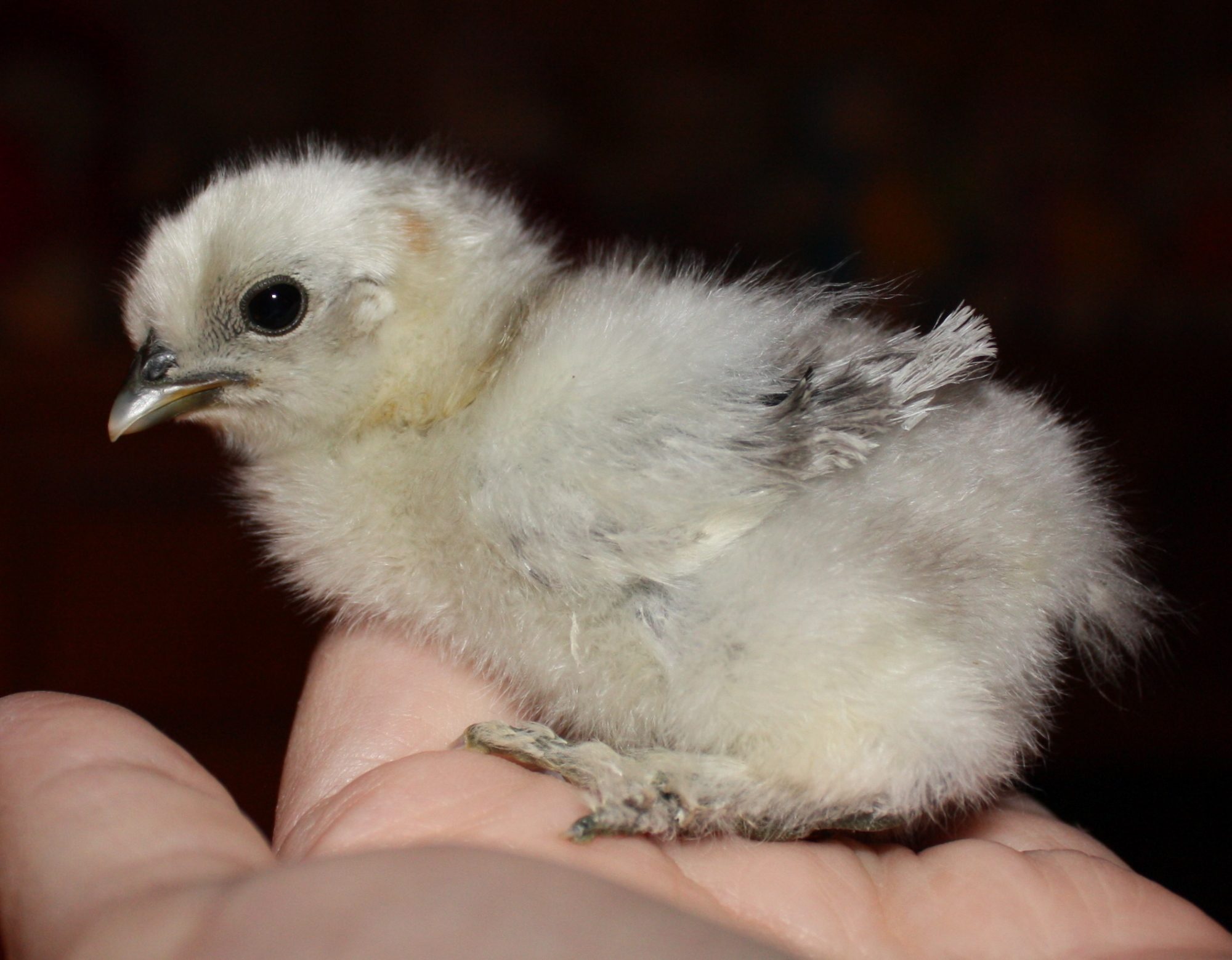 This baby is the result of a Frazzled Polish/Silkie mix and a buff Cochin/silkie mix. I have minimal experience with Silkies.