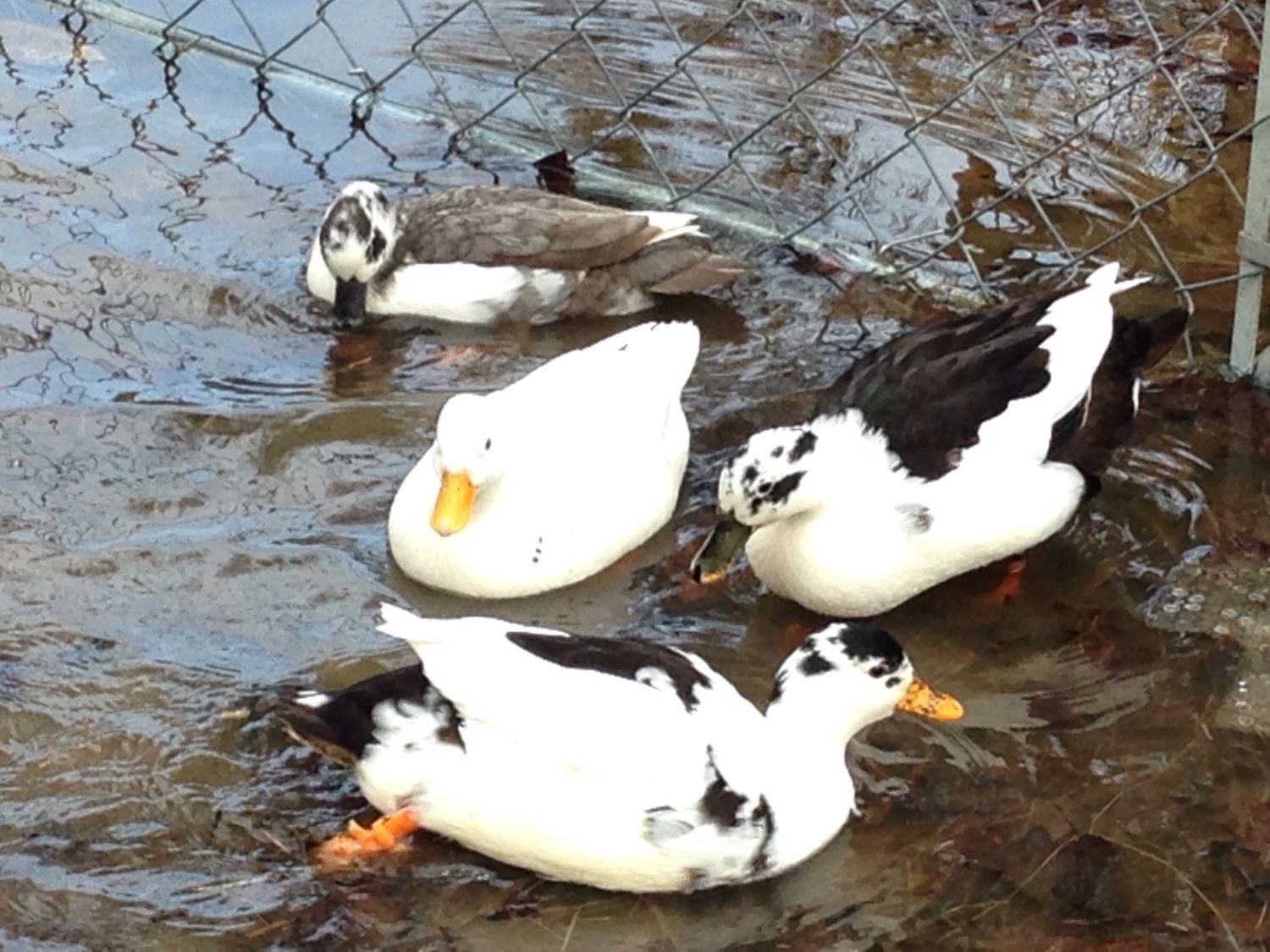 My drake is a black bibbed and the two hens are blue fawn and chocolate magpie ( from black magpie parents)