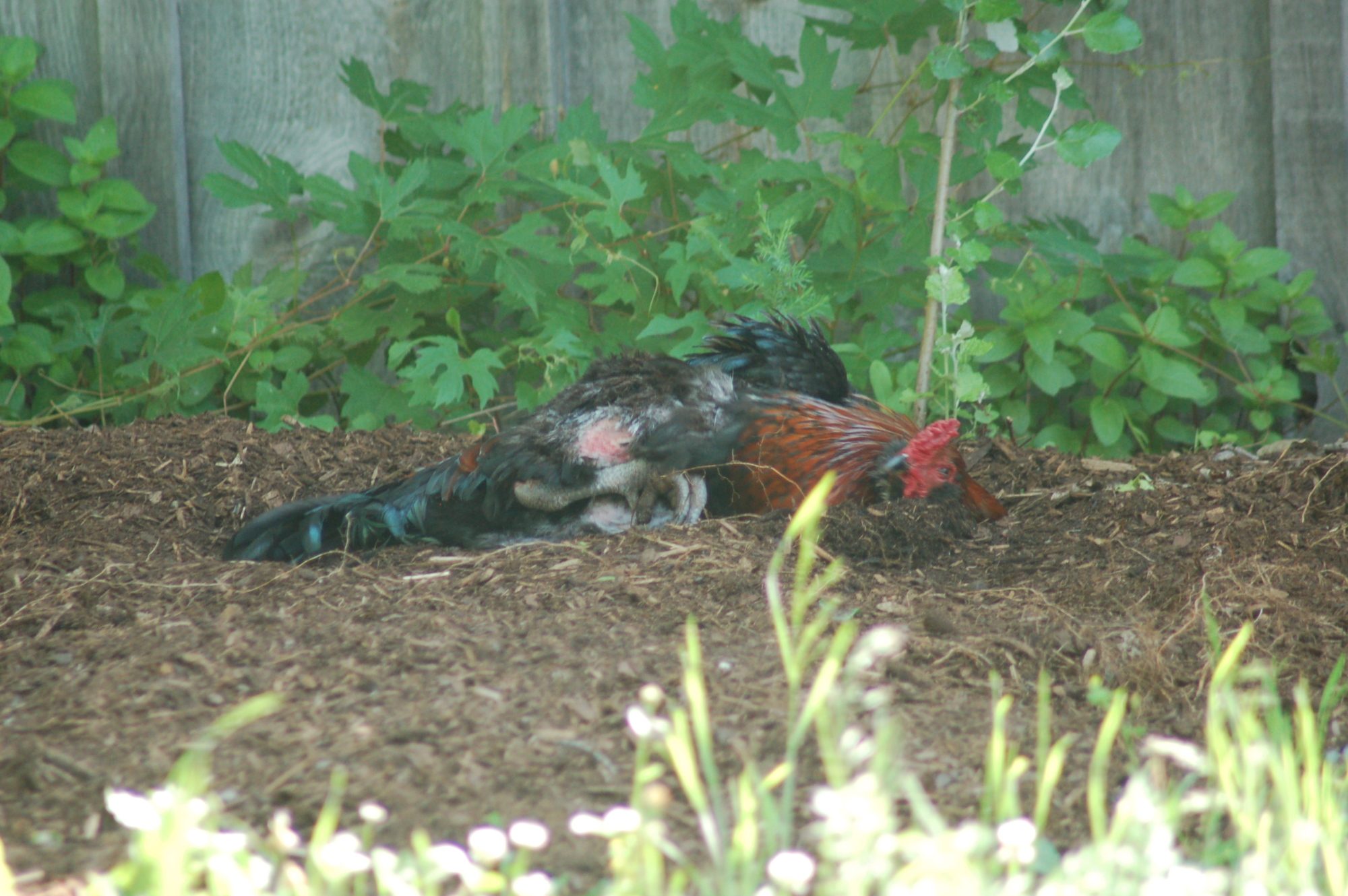 They were dustbathing in mulch, which is why it looks black in the one picture. Any ideas?