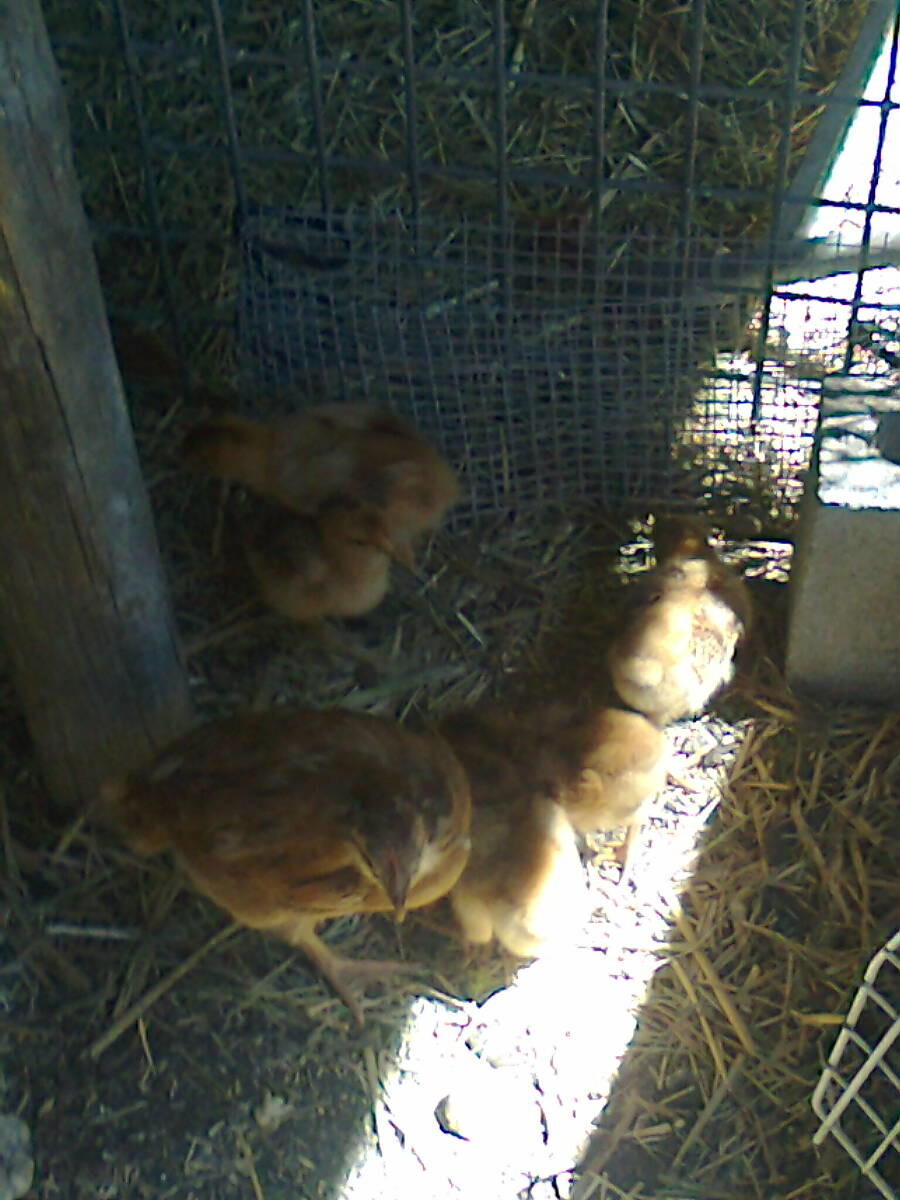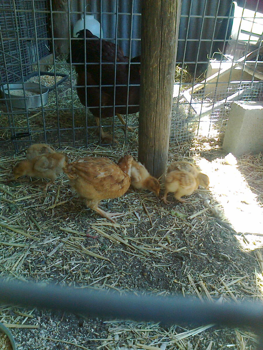 For now, Peepers is in a separate pen all to himself, which is attached to another pen containing a Momma Hen and 5 chicks who are about 10 days old. These two pens are both within the main coop. The chicks can go in and out under the divide to visit Peepers, but Peepers can't get under it to their side and the Mother Hen can't get to Peepers. I designed it deliberately that way as when I tried to let Peepers in with her she attacked him. At least he has some little friends during the day, but of course they all go to sleep under their Mother, and Peepers is left alone at dusk.