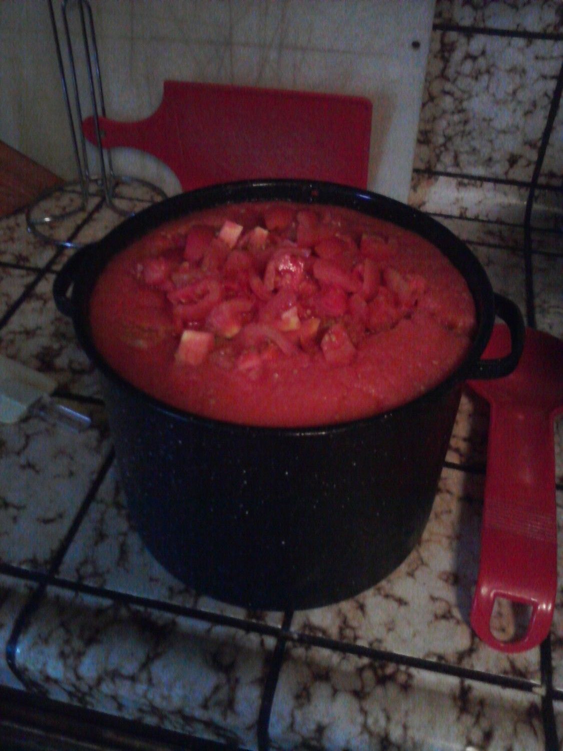 Cooked off what I had set down in Red Tomato Marmalade, got 3 pints out of it. For the final total of poundage of tomatoes in my First Crop Summer Garden was over 200# of tomatoes