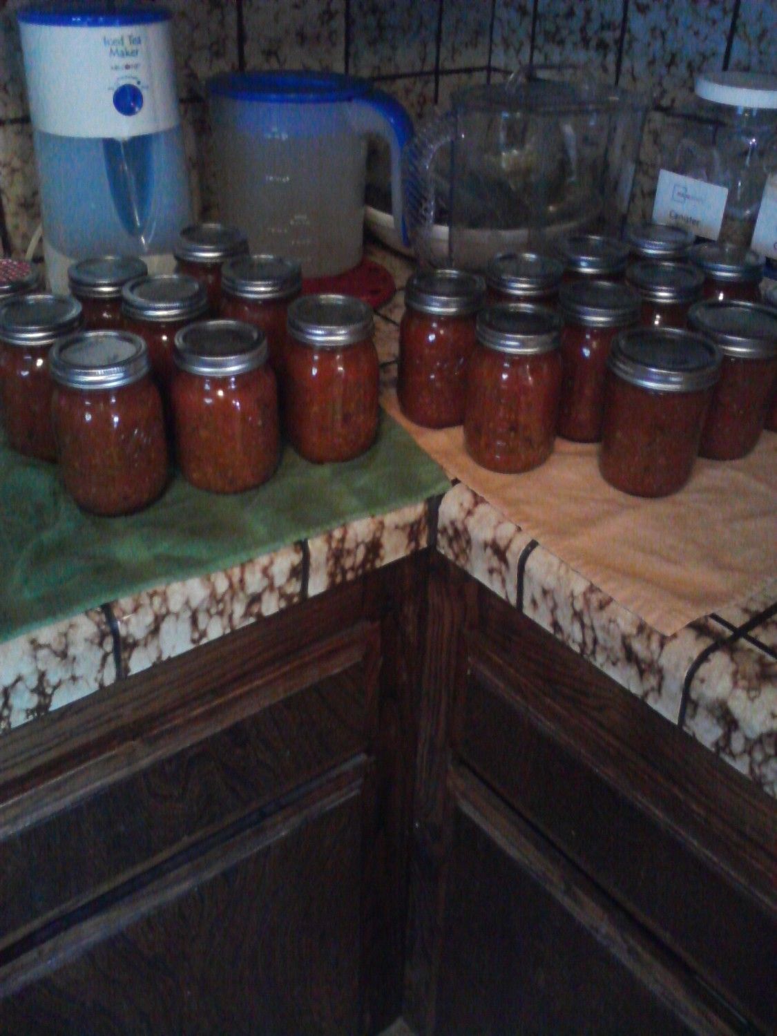 She plants like 20 tomatoes plants, she is the only one in her house that eats them..she need like 2.. I got enough to can 4 quarts &1 pint of tomatoes, 2 pints and 1/2 pint of salsa, also canned 10 quarts of pickles dill , bread and butter and 5 quarts of green beans...