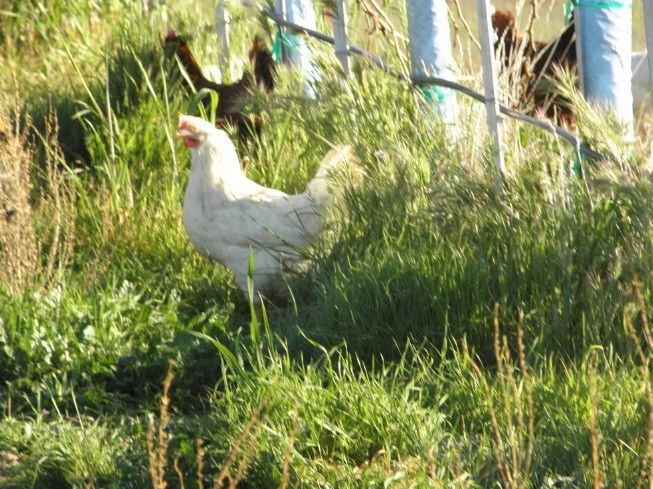 Today, I moved 7 of our chickens into the vineyard. If they do well, I'll move the remaining 14 in there so that they can clean out all those weeds. The vines have a oody stem, and I am hoping the chickens will leave them alone.
