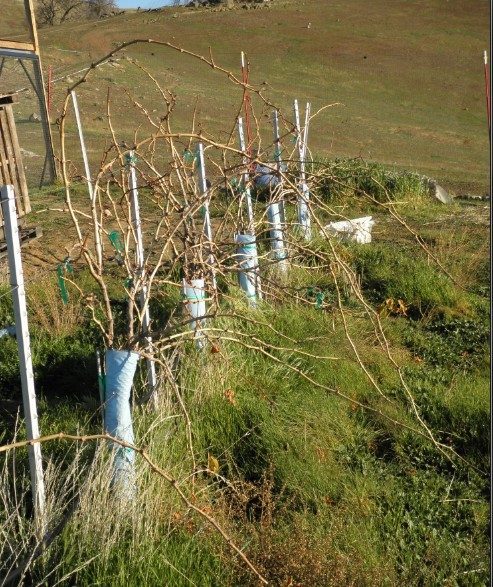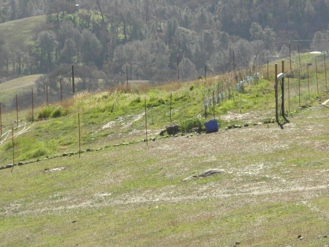 Yesterday, I finally built up the courage to deal with my budding vineyard. I let it get overgrown during last fall. I started 7 vines in Merlot and 7 vines in Riesling two seasons ago. Last year, I started 80 vines in a mysterious variety that I got from the roadside along a recently pruned vineyard in the central valley. I also started about 70 vines of Thompson Seedless. These are planted about a foot apart, and I, now, must dig them up and plant them in a permanent place – or perhaps pot them. So, I began pulling weeds away from the vines. I got to thinking about all those nice green plants and the barren ground of the chicken yard. A light goes off - Why not move the chickens down here in the vineyard?