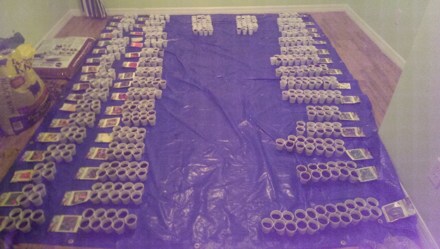 Our spare bedroom has turned into our seeds' room. Can't wait for this garden to get started. We have 480 cups planted for just food and herb crops. We are also going to start 100 sunflowers, 50 sweet and 50 Mexican marigolds, 40 lavender, 40 bee's friend, and 40 butterfly weed next weekend.