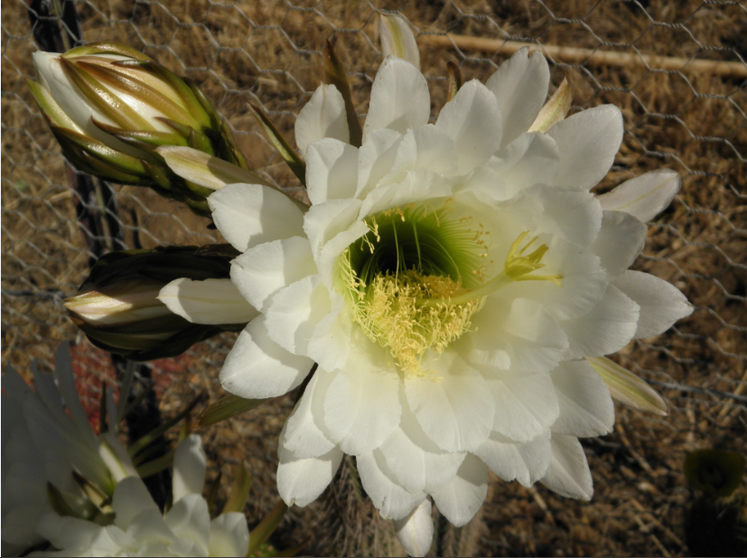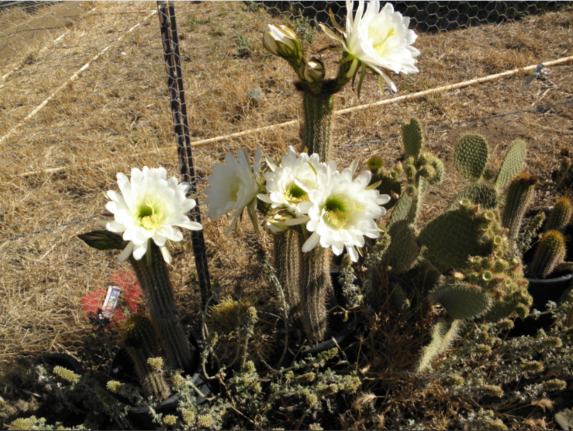 I didn't get a chance to plant my garden this year; so everything went to weeds. There are some cactus that were discarded along the garden's fence which I have ignored until this morning when I walked by: