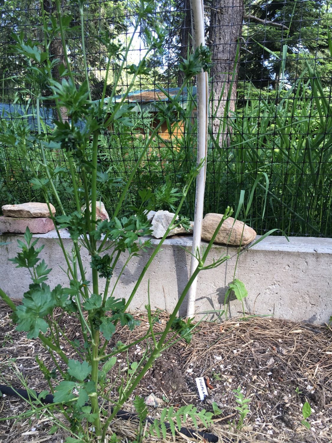 This image isn't very good at showing it, but something has eaten the leaves off this parsley stalk and completely denuded another. I've been treating for slugs, voles and cabbage worms and am not sure what to do next. Poor garden. The tomatoes are chlorotic, so I've got to help them too--and just when I thought I had some great soil going...