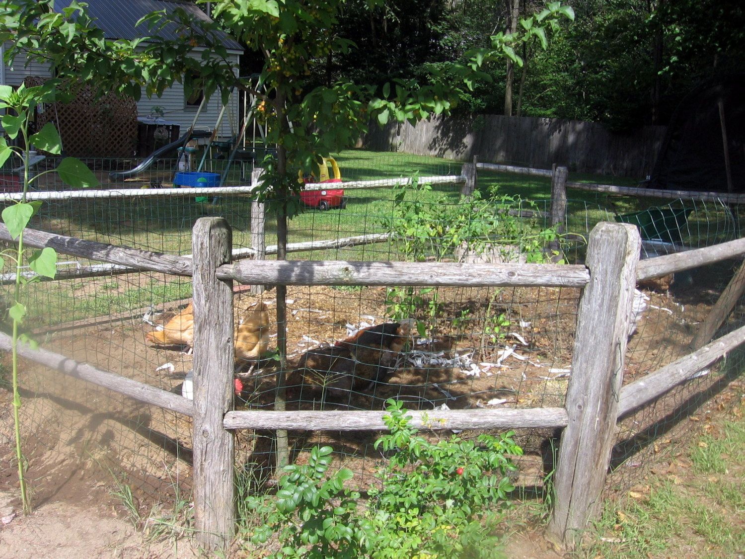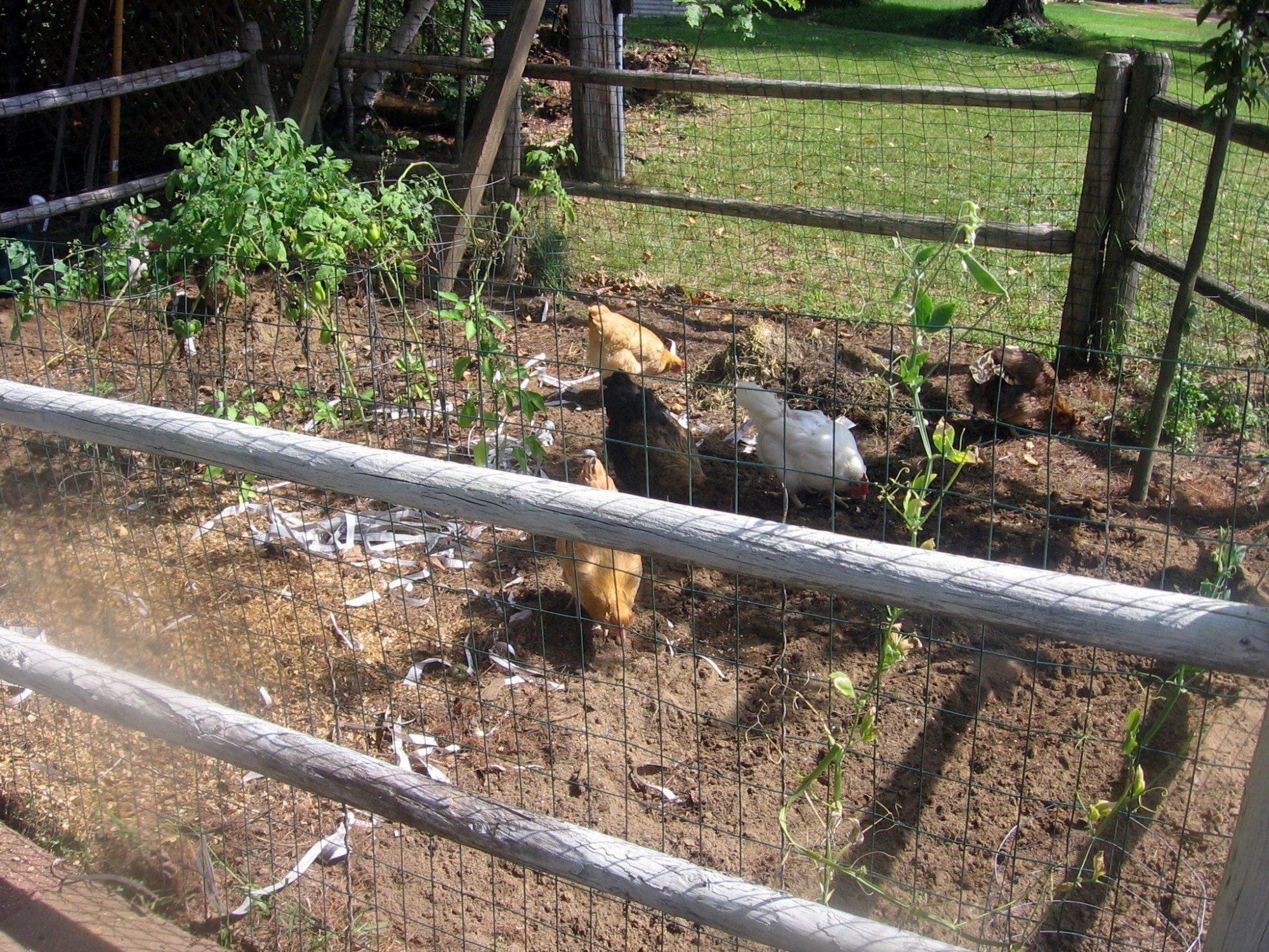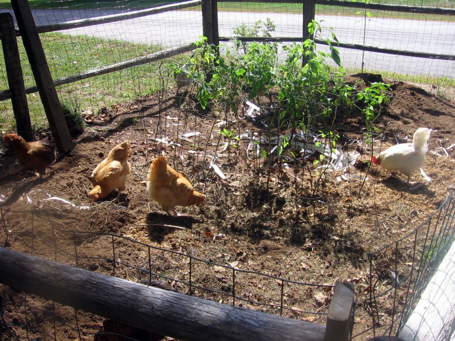 Now THIS is how you garden with chickens: My pitiful peppers and tomatoes are still in there, but they are so busy knocking down piles that they don't even seem to notice. They are doing quick work of tilling in the compost. I have held off adding the other amending materials until I get everyone's opinions on the safeness of them. Not much of a garden (maybe 15'x15') but I'm hoping for amazing results next year with their help.