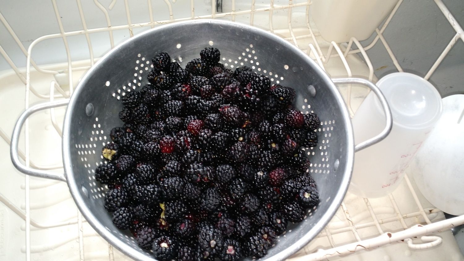 We saw a couple ripe blackberries and decided to pick all we could that are ripe now.