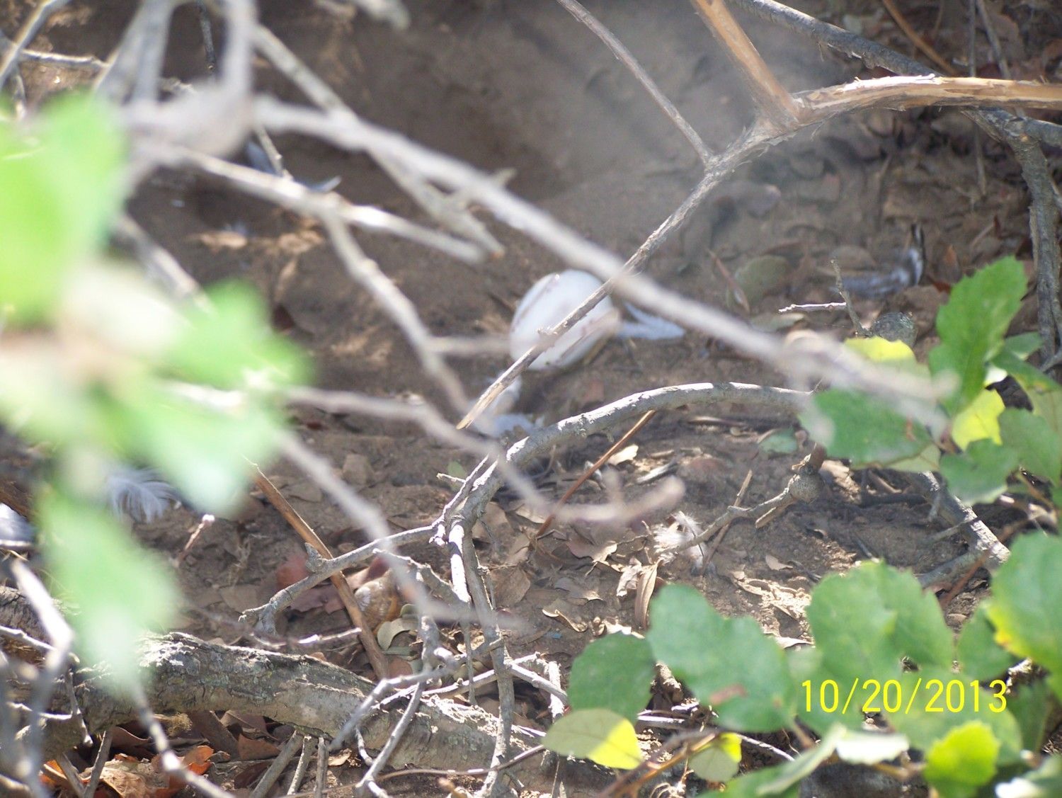 Today I discovered that one of my Hens has carried, YES....an ceramic egg up the hill...I had put 2 ceramic eggs in their coop to see if they would lay there again. Somehow, one of the ceramic eggs was not only taken out of the nesting box, but it sits up a foot, which means they carried it out of the box to the floor and then took it up the hill and put it under the bushes near one of their dirt bath holes . I think they must have used the air hole in the bottom of the egg to carry it. I wish I had seen them do it. Here's a photo I wish I could post my video, you can't believe the distance this was carried....LOL This is hilarious!! The things they do when we're not looking, eh? I guess she liked HER location better, lol!!