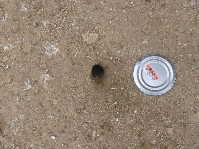 Something would have to chew like all get out to make a hole like this if it has no hands. I don't think a snake burrows like this, but I don't know what else would. The ground is so hard, that if I gave you a shovel and asked you to dig me a hole, you'd probably hate me.Thanks for the pic. Since there is no webbing I'll have to change my answer to snake. What type well...![]()