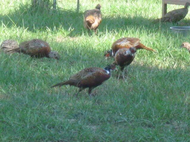 We don't have them any more. This was several years ago. Their area now has chick grow-out coops and pens. We enjoyed them when we had them. They only got the scratch and cracked corn as treats not as feed. They had their Game Bird Breeder Pellets as their primary food. They knew where their feeder was and their grit pan. Since we gave them grain as treats we also provided free choice granite grit. We live in Florida.