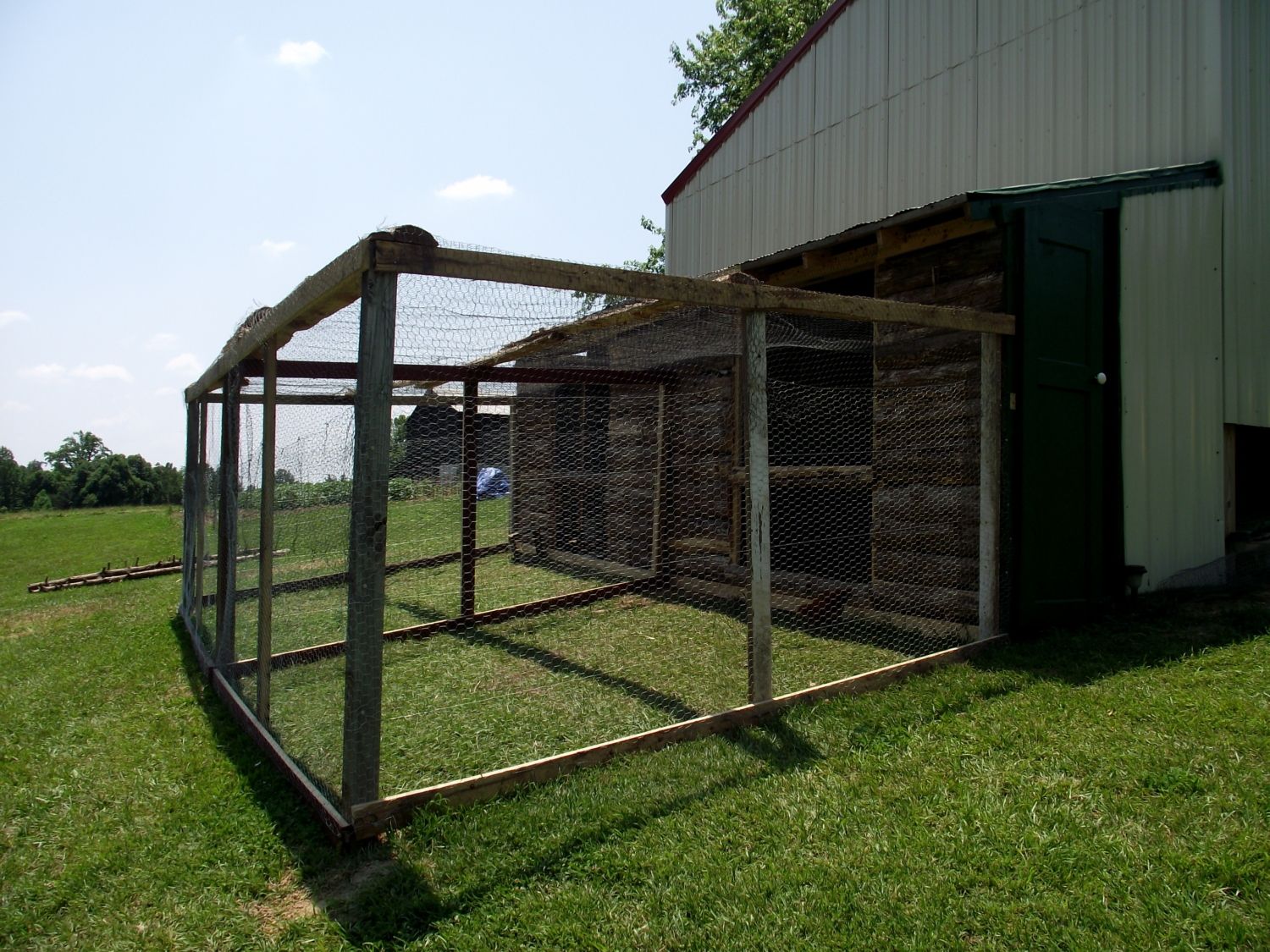 Front View of the coop...we have it divided by chicken wire.....