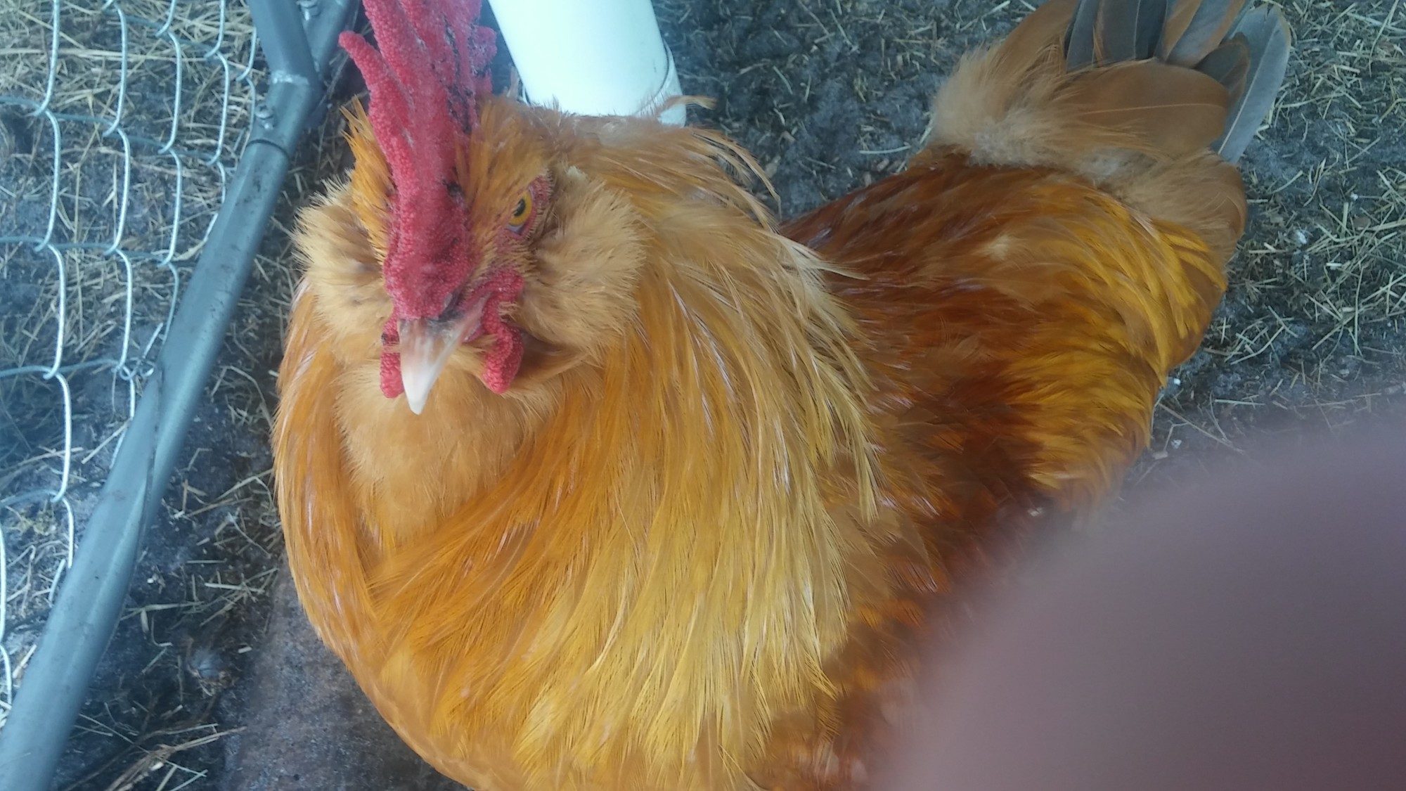 Pictured is a rooster chick that I hatched out the end of October 2015. He is Buff Orpington on the Rooster side and Easter Egger on the hen side. I have been hatching a while and I am moving towards purebred chicks, not necessarily show quality, my customer base is backyard poultry for eggs and pets. Since the Easter Egger is a mutt bird anyway I was wondering what you guys think of this guy. He is just over 4 months still filling out, and I think very pretty with full cheeks and beard, and a quirky little personality. He follows me around (sucker) I am getting attached to this guy but to keep him he needs to be a stud muffin! Since the Easter Egger is not really purebred do you think I could save him for my Easter Eggers hens and put him to work? I hope the pictures are helpful.